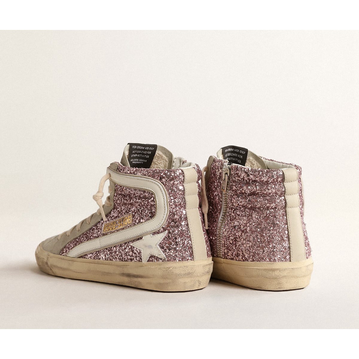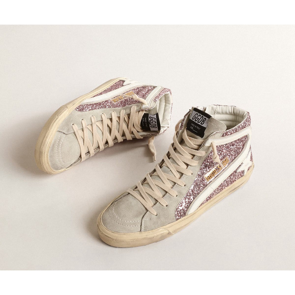 Scarpe Ginnastica da donna femminile d’oca d’oro in lilla glitter con stella in pelle bianca e flash gwf00115.f004526.82284