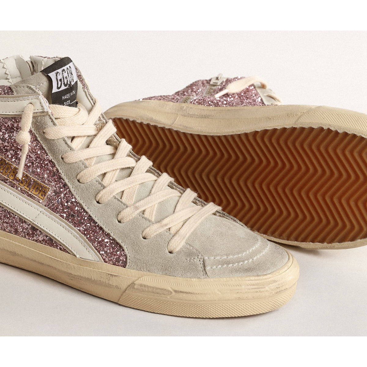 Skate Soul, Attitude glamour. Le nostre Scarpe Ginnastica da scivolo ti portano direttamente a Venezia Beach, tra un Ollie e un calcio d’inizio. Questo modello con una tomaia glitter lilla presenta una stella in pelle bianca e una linguetta in pelle color sabbia. Il doppio flash in pelle bianca e in pelle color sabbia, lingua in pelle scamosciata grigio ghiaccio e lacci color crema completano il look.