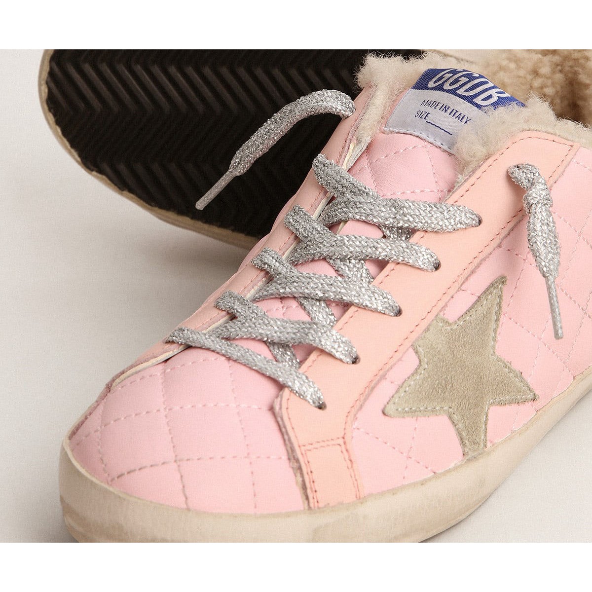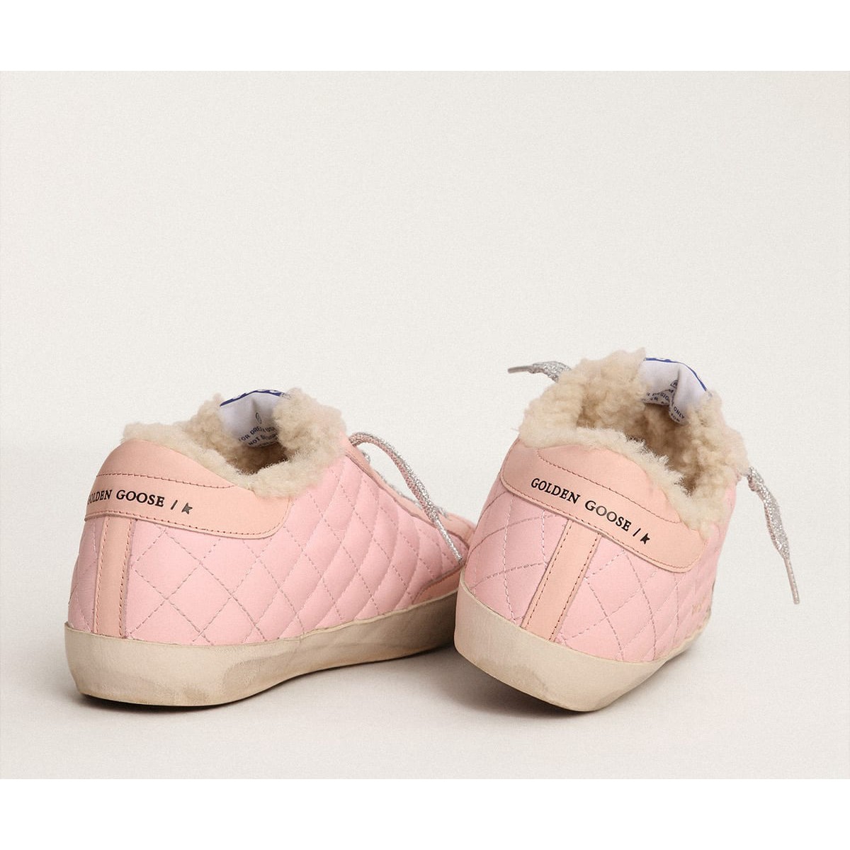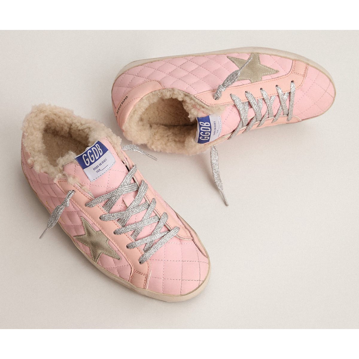 Scarpe Ginnastica super stelle femminili d’oca dorate in pelle trapuntata rosa con fodera di shearling GWF00101.F001731.10841
