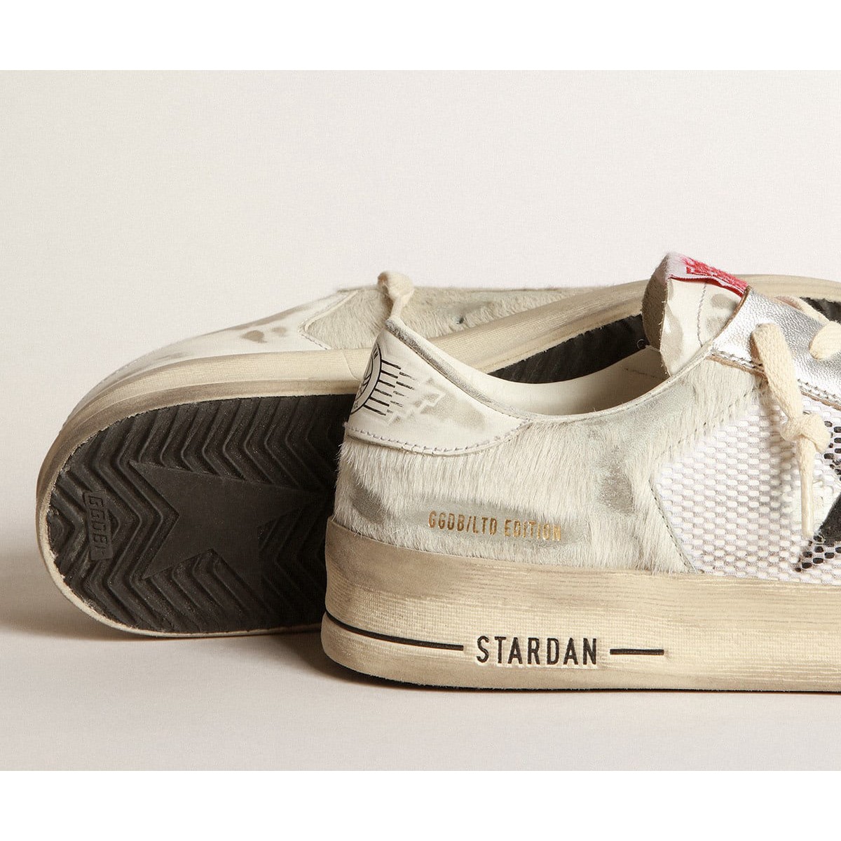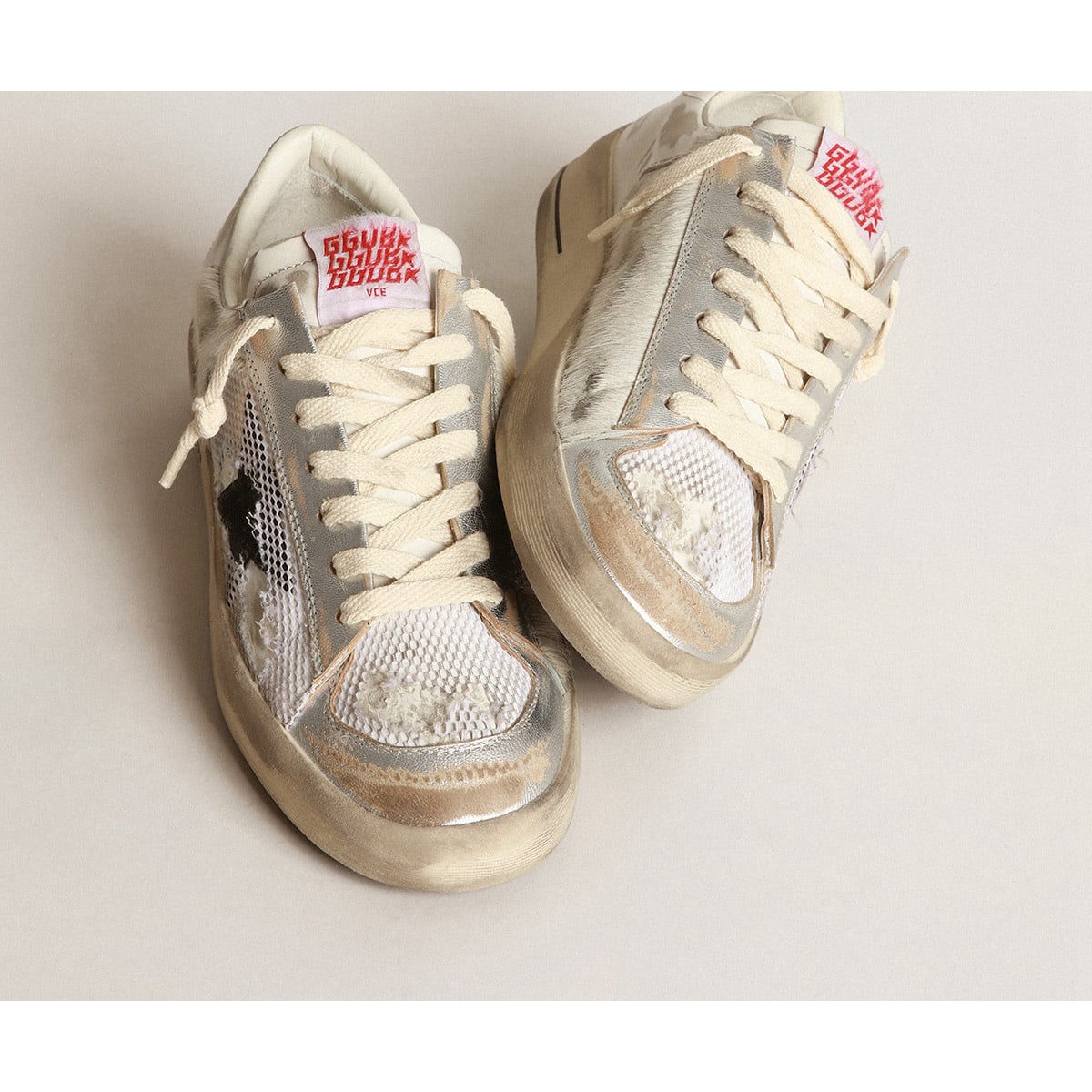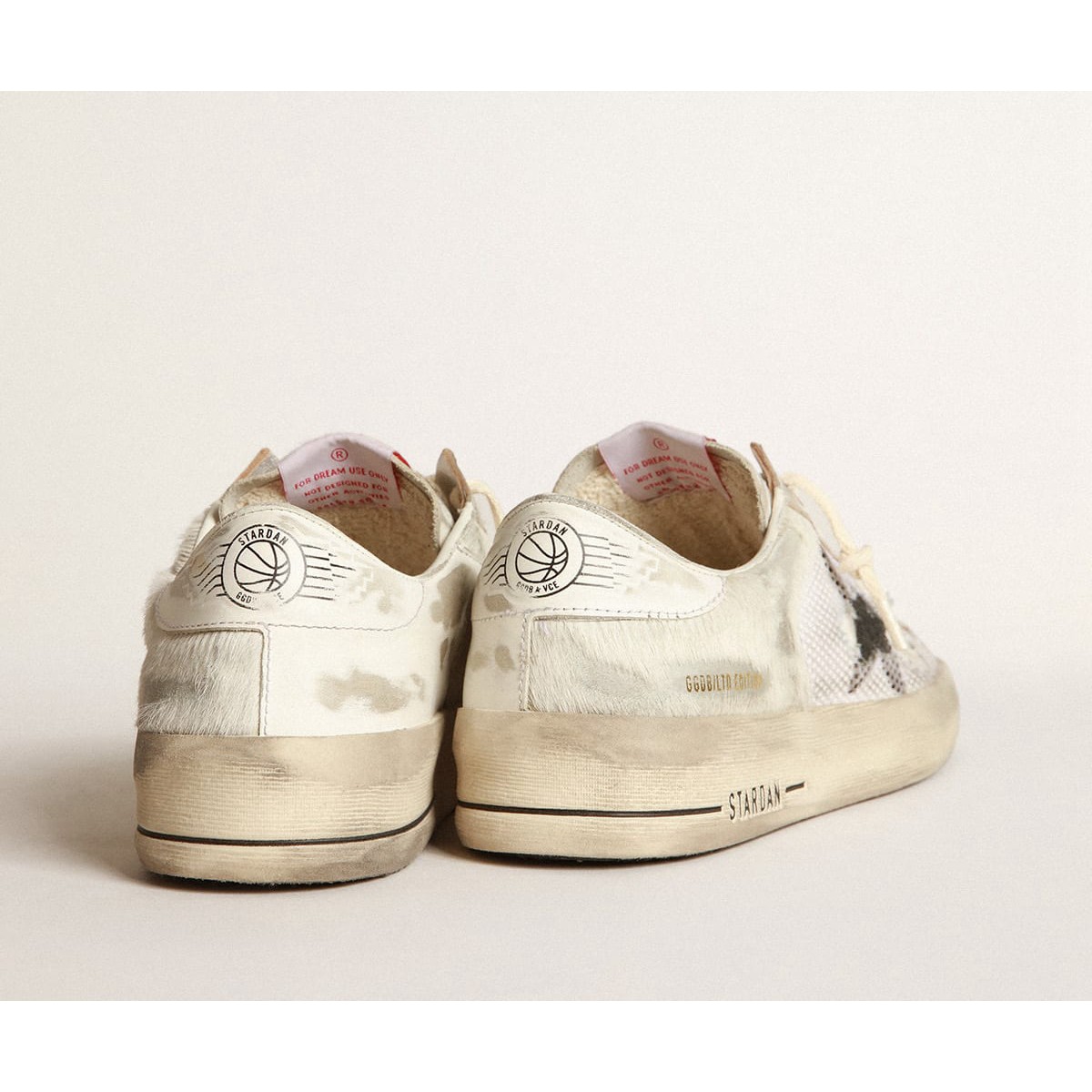 laboratorio di Scarpe Ginnastica stardan femminili d’oca d’oro in pelle di cavallo bianco e pelle con stella in pelle scamosciata nera GWF00128.F003532.70159