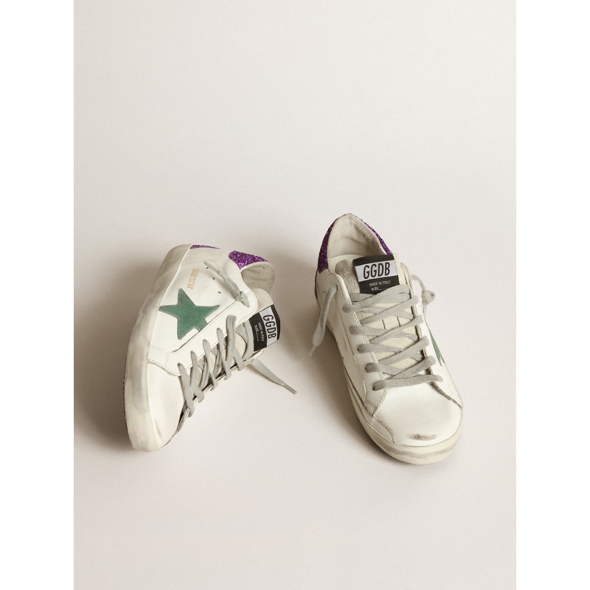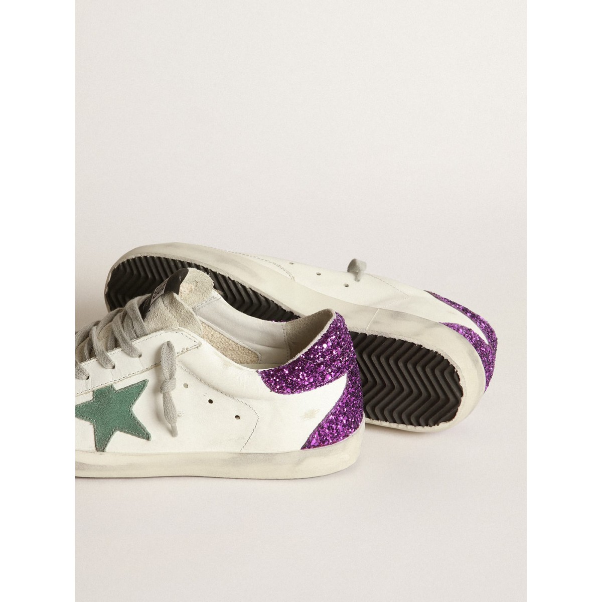 Il fascino di queste Scarpe Ginnastica di Streetwear Elegance sta nelle finiture esclusive e nell’uso di materiali premium. Ogni modello viene aggiornato di stagione in stagione per creare classici che sono sempre contemporanei: queste Scarpe Ginnastica super star presentano una stella in pelle scamosciata verde anice e un posteriore viola scintillante.