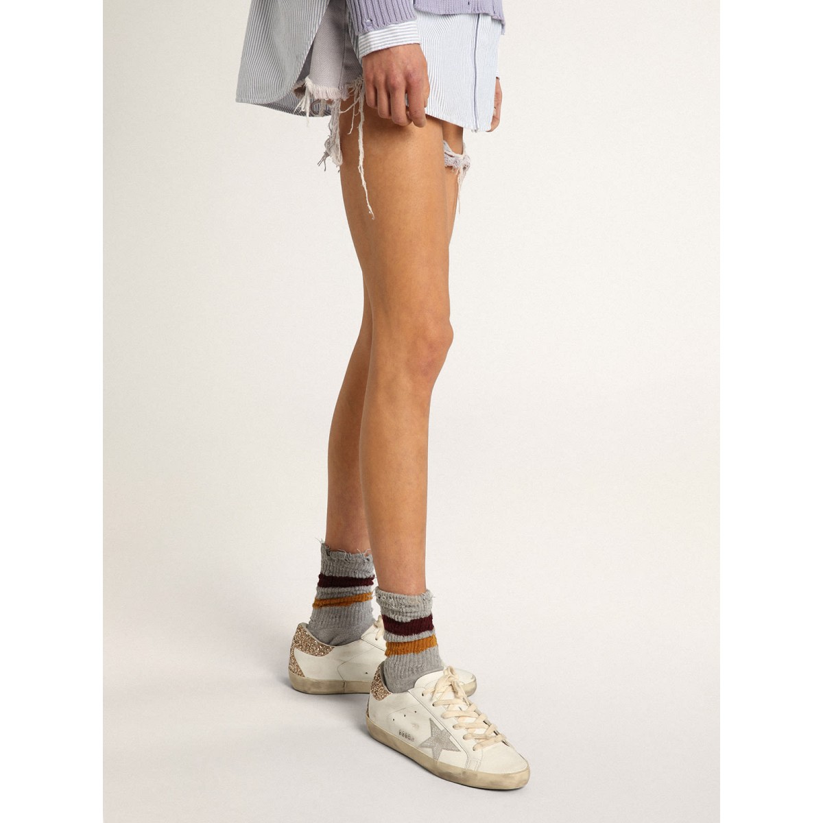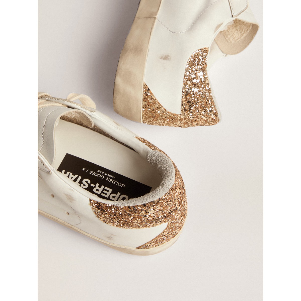 Un’icona senza tempo eppure è in continua evoluzione. A Golden, adoriamo prendere i nostri classici e rielaborarli sempre, sempre da una nuova prospettiva. Queste scarpe da ginnastica super star con una tomaia in pelle bianca presentano una stella in pelle argentata con stampa serpente e un tallone glitter oro. Le lettere GGDB Galvanic Silver Metal e i lacci color crema aggiungono il tocco finale.