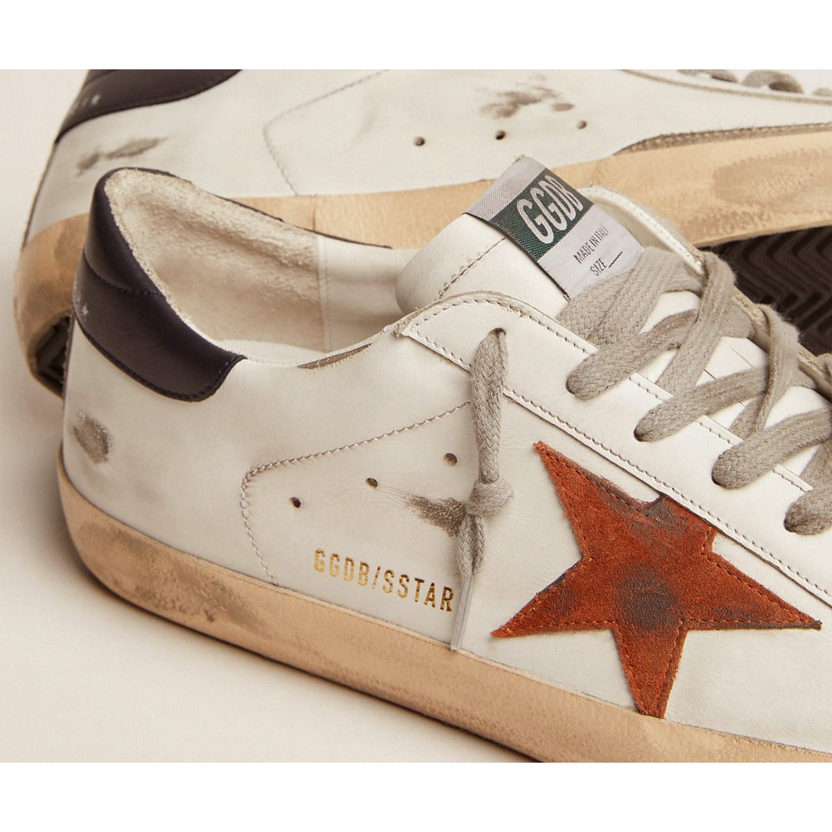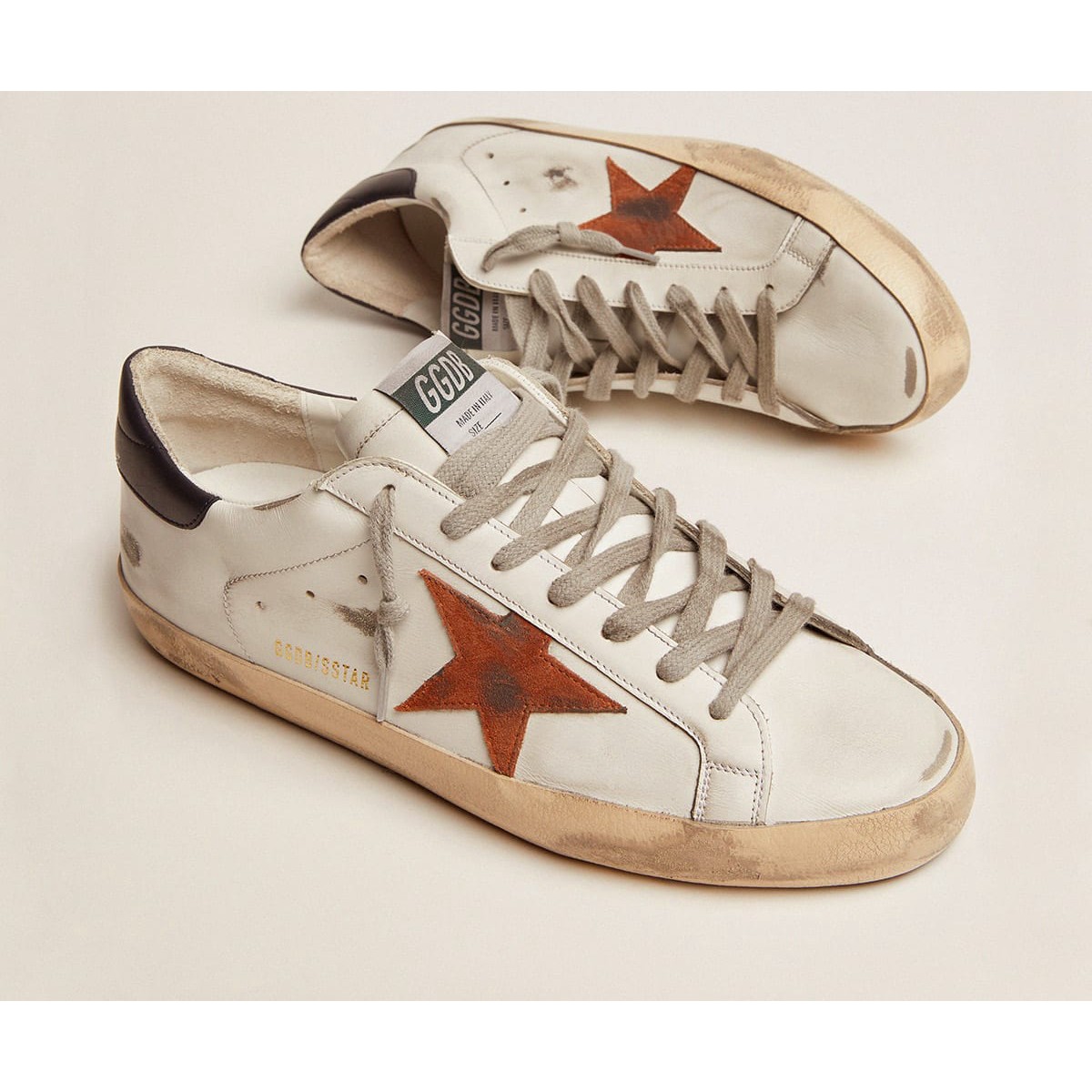 Un’icona senza tempo eppure che è in continua evoluzione. A Golden, adoriamo prendere i nostri classici e rielaborarli sempre, sempre da una nuova prospettiva. Questi super stelle con una tomaia in pelle bianca presentano una stella in pelle scamosciata arancione e una linguetta in pelle blu scuro. E lacci grigi ghiacciati aggiungono il tocco finale.