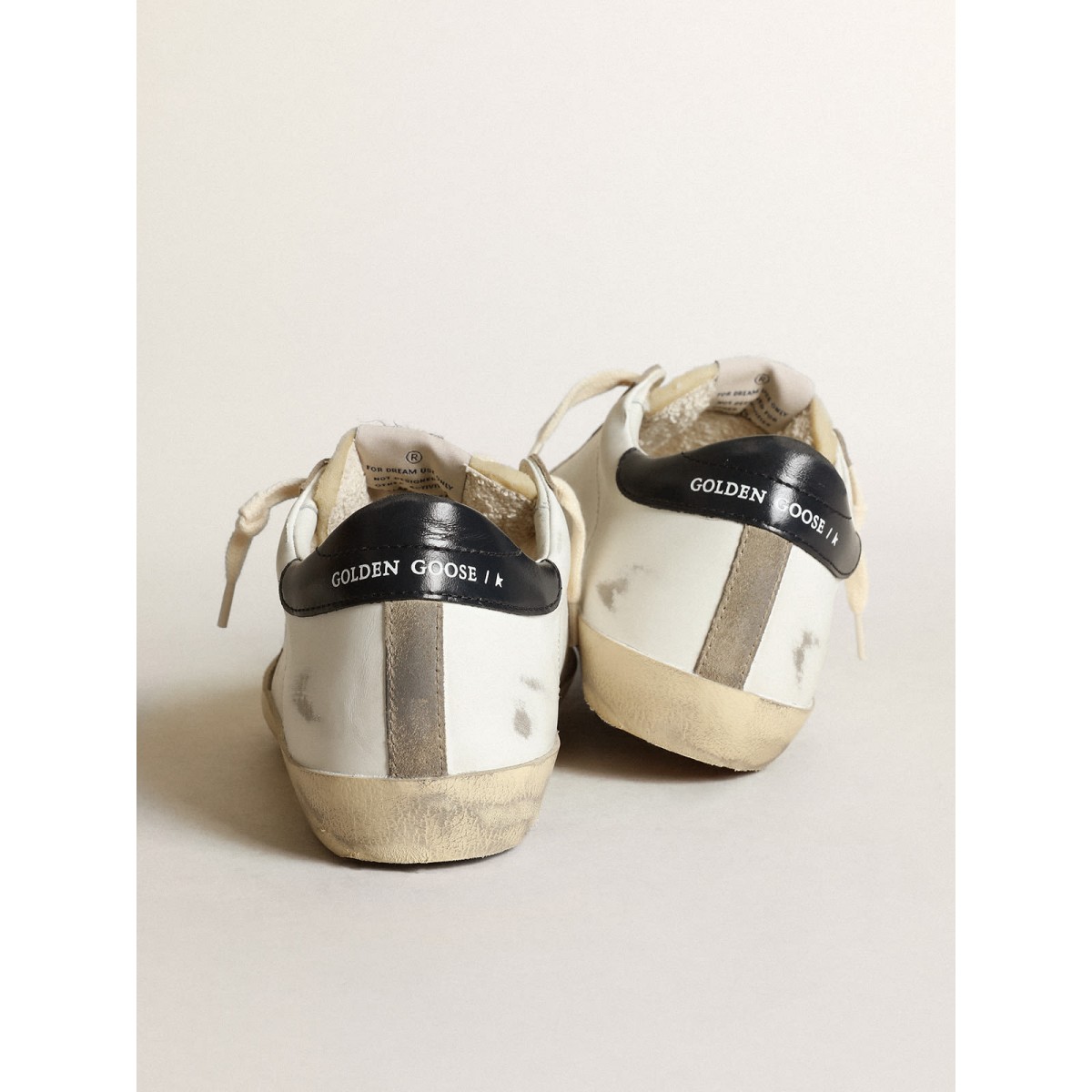 Un’icona senza tempo eppure è in continua evoluzione. A Golden, adoriamo prendere i nostri classici e rielaborarli sempre, sempre da una nuova prospettiva. Questo modello femminile con tomaia in pelle bianca presenta una stella perforata e una linguetta lucida con tacco in pelle blu di mezzanotte. Gli inserti in pelle scamosciata colomba e i lacci color crema aggiungono il tocco finale.
