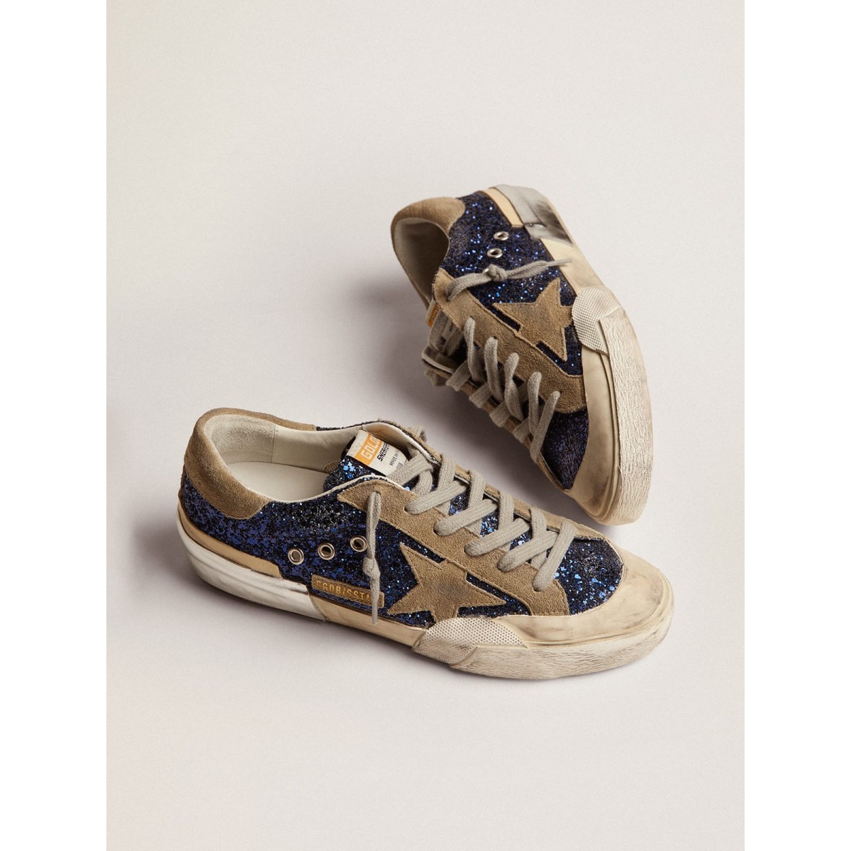 Scarpe Ginnastica super-star dell’oca dorata in glitter blu con stella in pelle scamosciata grigio-grigio GWF00107.F002741.81593