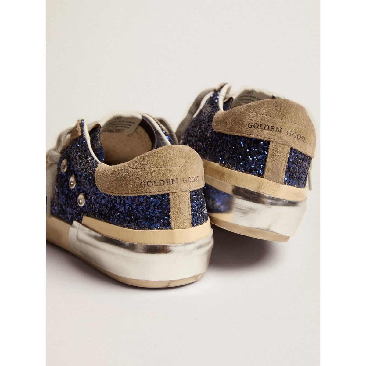 Un’icona senza tempo eppure è in continua evoluzione. A Golden, adoriamo prendere i nostri classici e rielaborarli sempre, sempre da una nuova prospettiva. Queste scarpe da ginnastica super star presentano dettagli inaspettati: la tomaia glitter blu è impreziosita da una stella in pelle scamosciata beige, una linguetta e inserti del tallone, mentre la volpe è multipla. Questa è una tecnica artigianale complessa che comprende l’aggiunta di varie trame e sfumature di volpe: in pelle liscia in pelle color platino e pelle martellato beige.