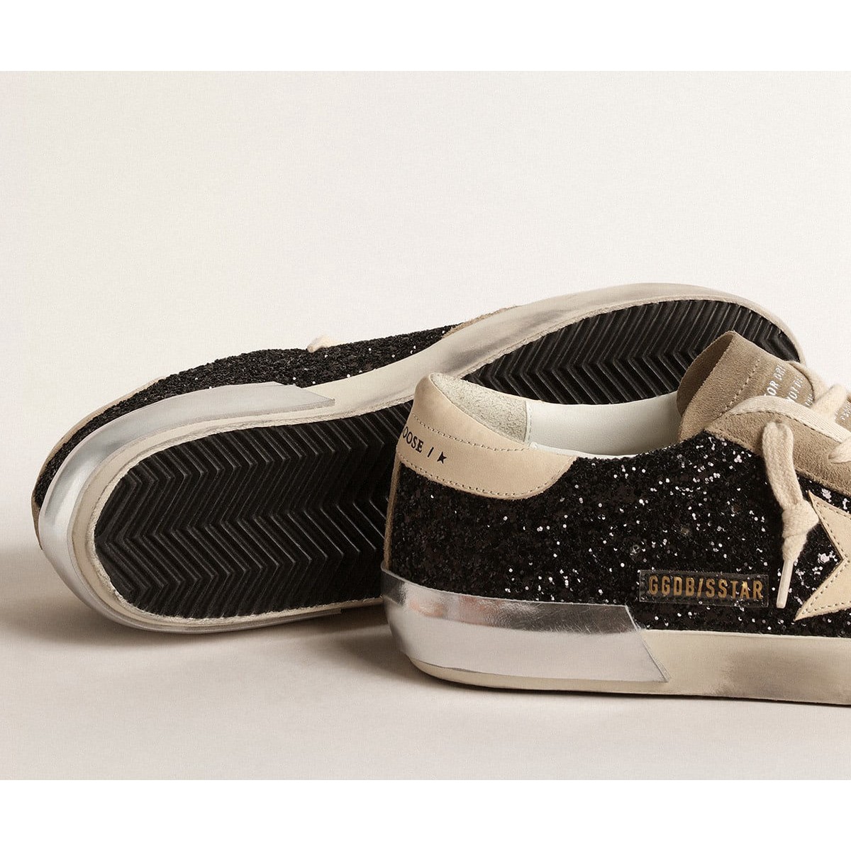 Recensisci per primo “Scarpe Ginnastica super-star dell’oca dorata in glitter neri con stella crema e inserti in pelle scamosciata GWF00587.F004683.90401”