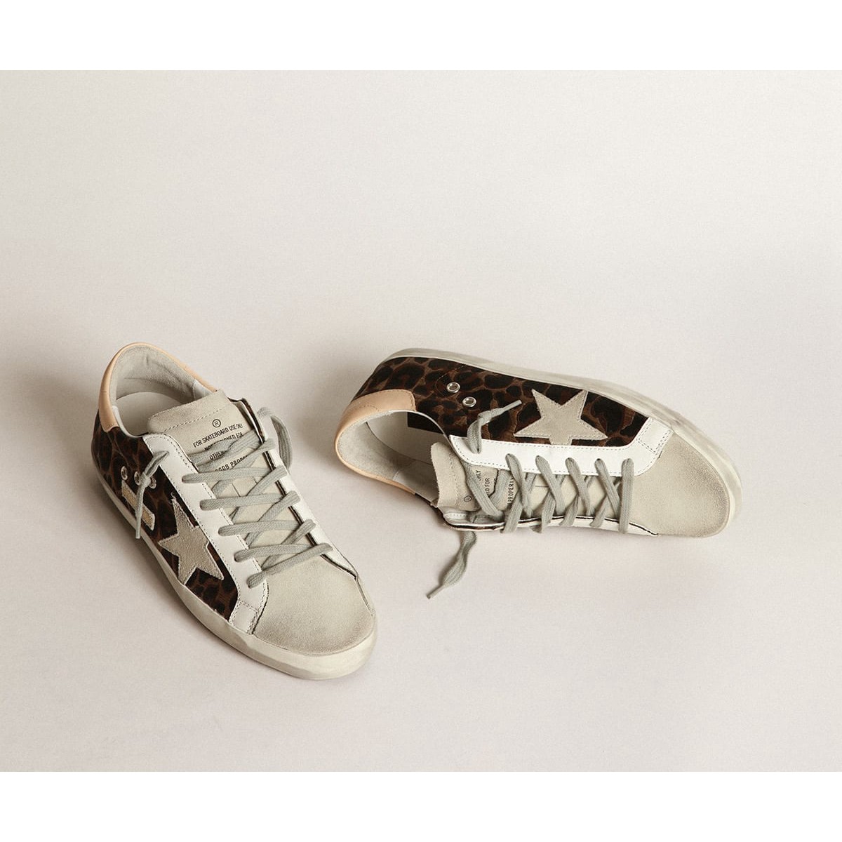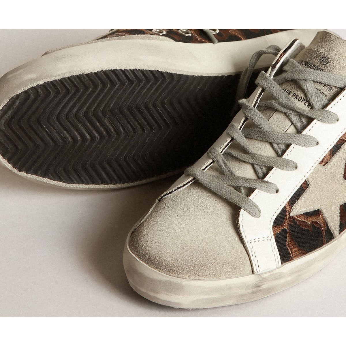 Scarpe Ginnastica super-star con stampa leopardo femminile d’Ora dorata con stella in pelle scamosciata GWF00101.F003639.81895
