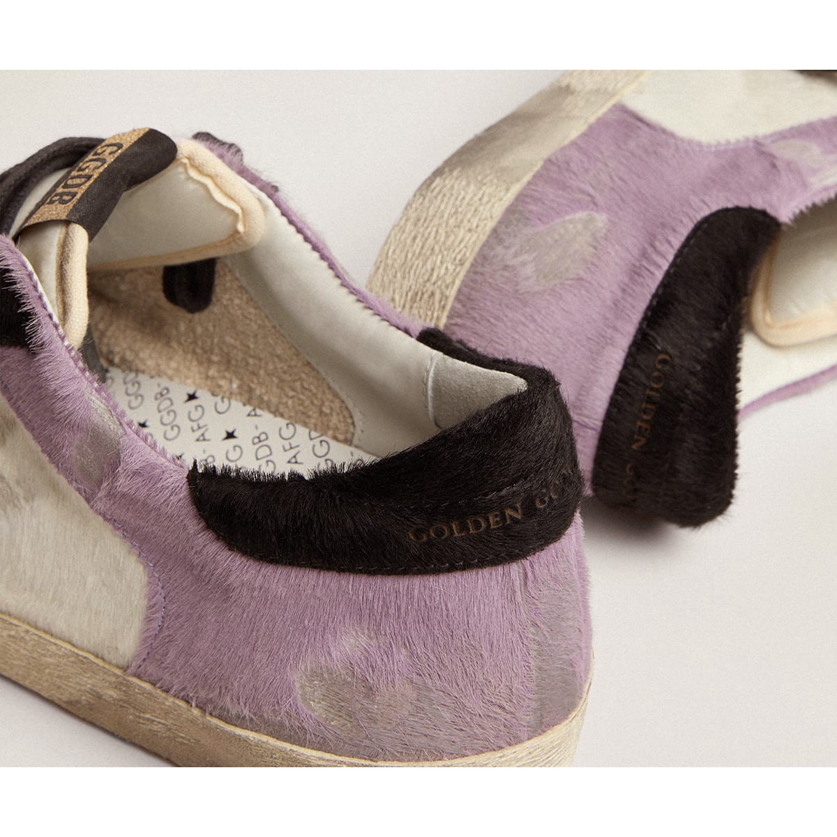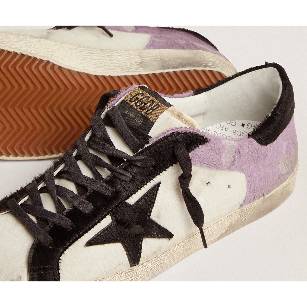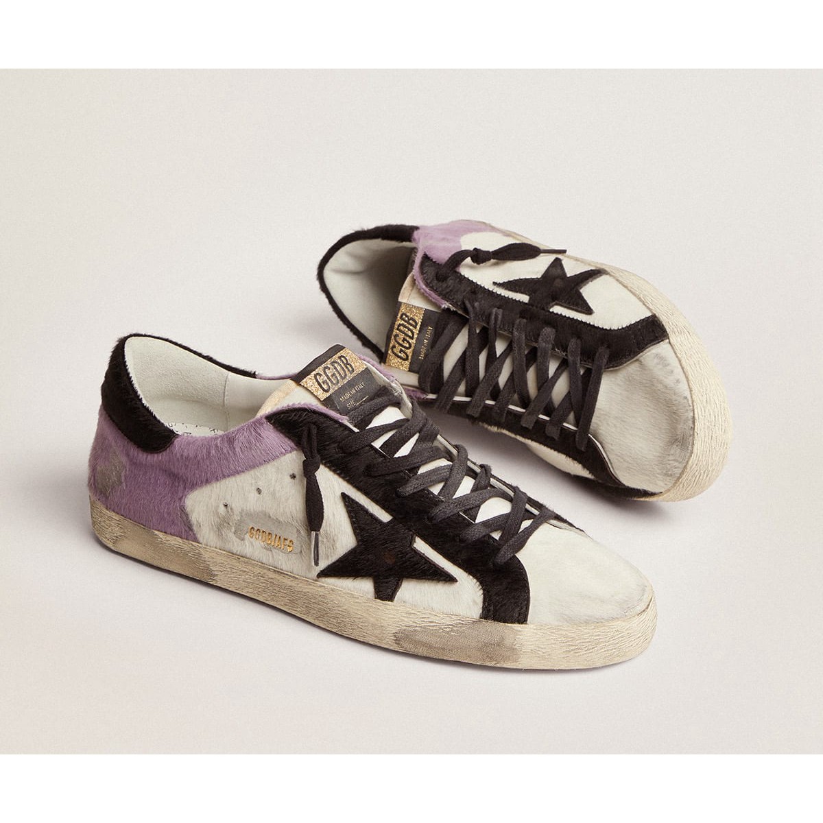 Un’icona senza tempo, ma una costante evoluzione. A Golden, adoriamo prendere i nostri classici e rielaborarli sempre, sempre da una nuova prospettiva. Questo modello di pelle di pony bianca e lilla presenta inserti per la pelle nera, tra cui la linguetta di stelle e tacchi. E lacci neri aggiungono un elegante tocco di finitura.