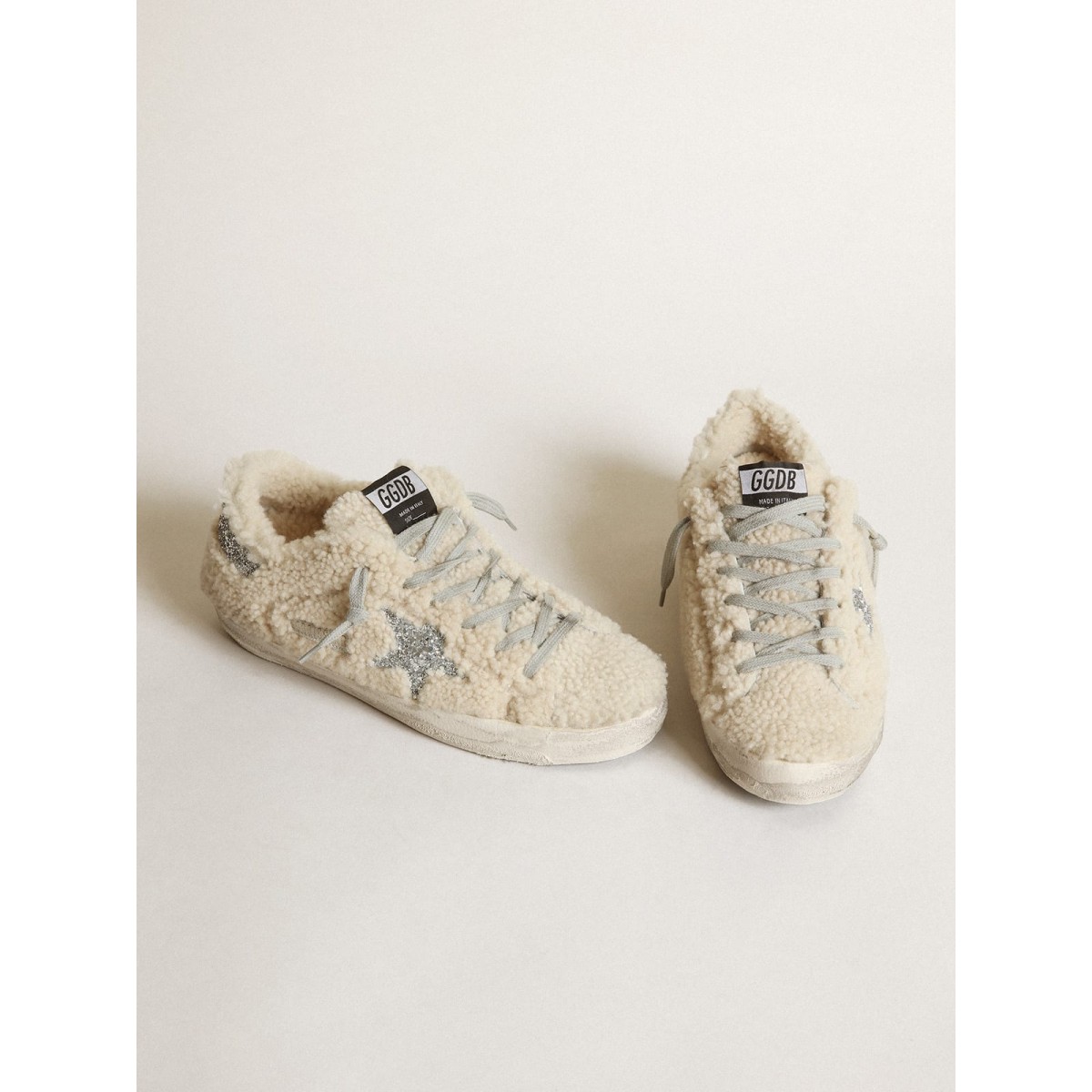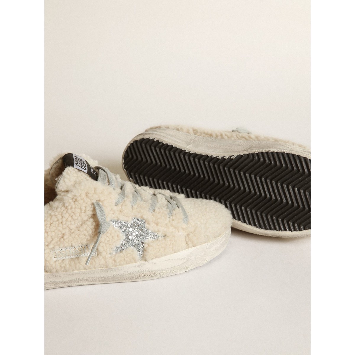 Un’icona senza tempo eppure è in continua evoluzione. A Golden, adoriamo prendere i nostri classici e rielaborarli sempre, sempre da una nuova prospettiva. Queste scarpe da ginnastica super star con una tomaia beige presentano una stella glitter d’argento e una linguetta del tallone. E lacci grigi ghiacciati aggiungono il tocco finale.