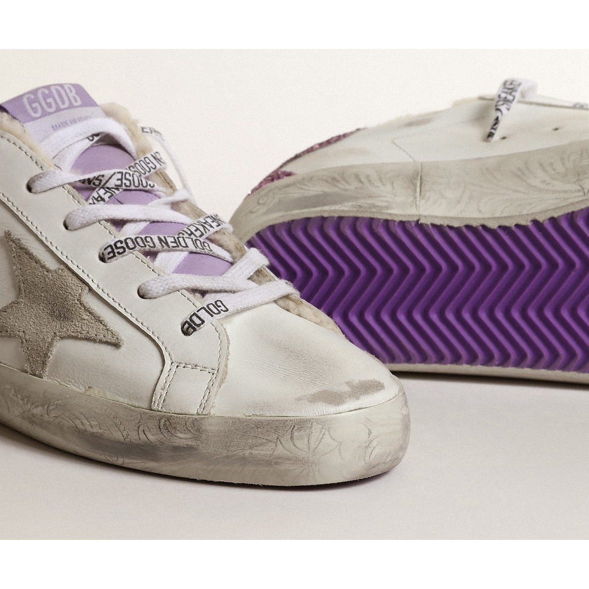 Scarpe Ginnastica super stelle femminili d’oca d’oro in pelle bianca con stella in pelle scamosciata grigia GWF00102.F001623.10641