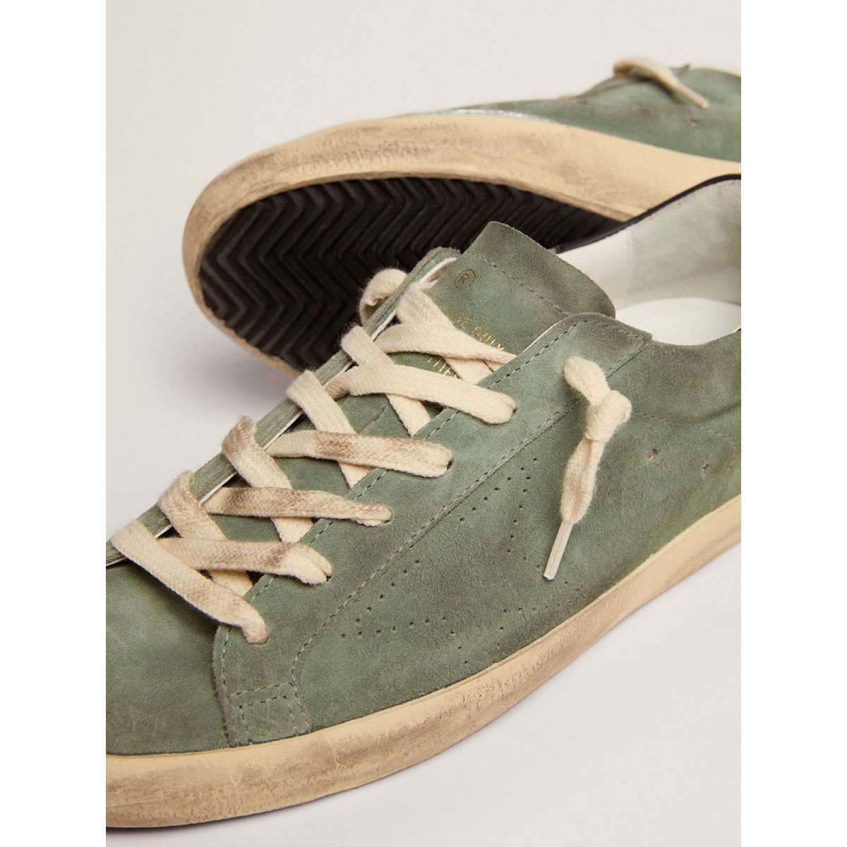 Un’icona senza tempo eppure è in continua evoluzione. A Golden, adoriamo prendere i nostri classici e rielaborarli sempre, sempre da una nuova prospettiva. Su questo modello, la tomaia in pelle scamosciata verde militare presenta una stella perforata e una linguetta in pelle blu scuro. E lacci color crema aggiungono il tocco finale.