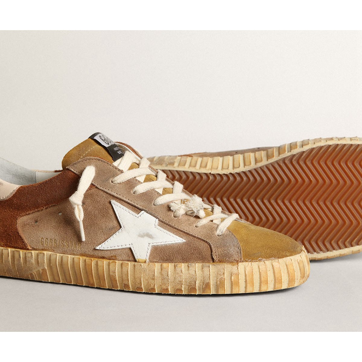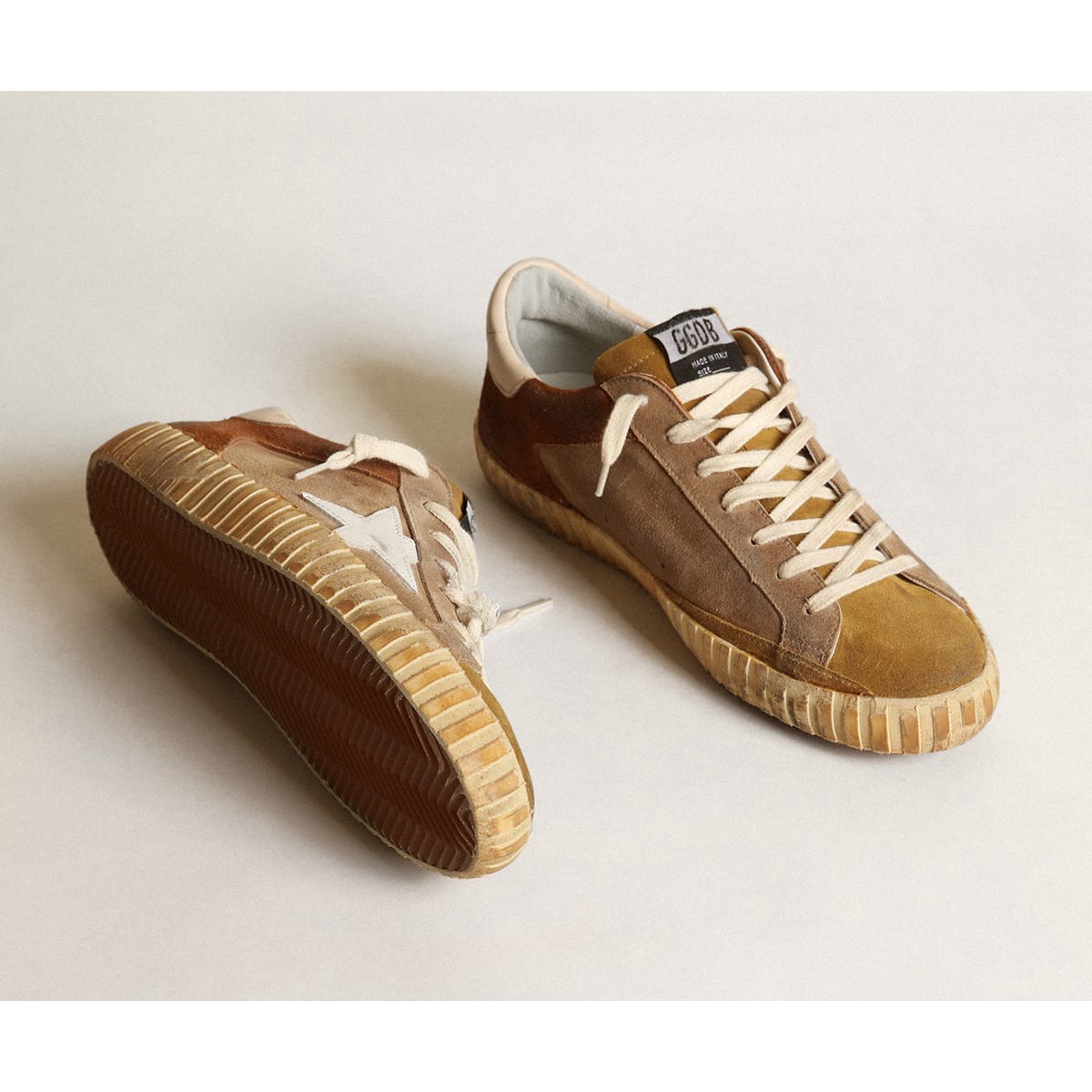 Un’icona senza tempo, ma una che è in continua evoluzione. A Golden, adoriamo prendere i nostri classici e rielaborarli sempre, sempre da una nuova prospettiva. Questo modello maschile con tabacco e tomaia in pelle scamosciata marrone presenta una stella in pelle bianca e una linguetta di cuoio leggera beige nappa. La lingua in pelle scamosciata color cammello e i lacci color crema aggiungono il tocco finale.