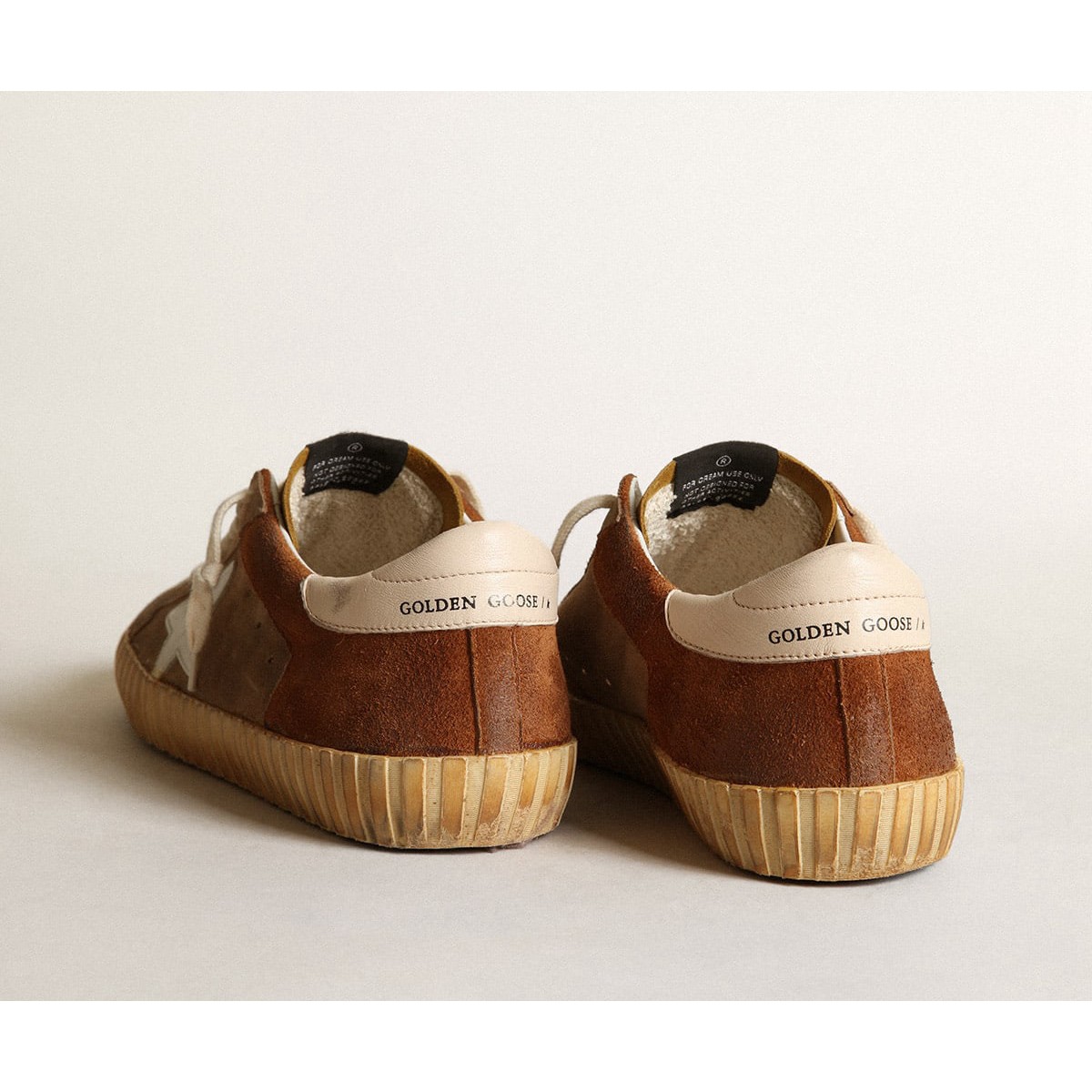 Scarpe Ginnastica super stelle maschili d’oca d’oro in tabacco e pelle scamosciata marrone con stella bianca GMF00103.F003454.55501