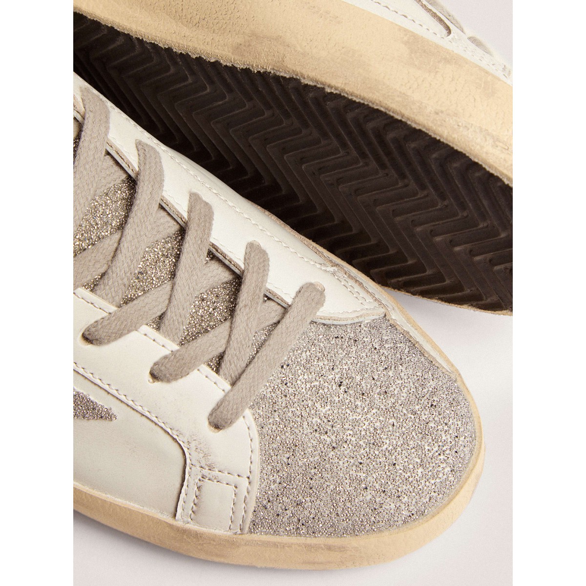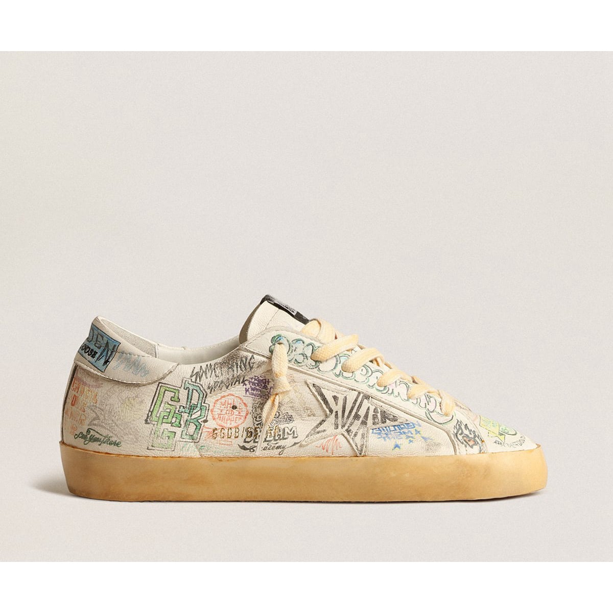 Un’icona senza tempo eppure è in continua evoluzione. A Golden, adoriamo prendere i nostri classici e rielaborarli sempre, sempre da una nuova prospettiva. Queste scarpe da ginnastica super star presentano una tomaia in pelle bianca e una linguetta per lingua, stella e tallone impreziositi da cristalli Swarovski. Il dettaglio di lettere Galvanic Silver Metal GGDB aggiunge il tocco finale.