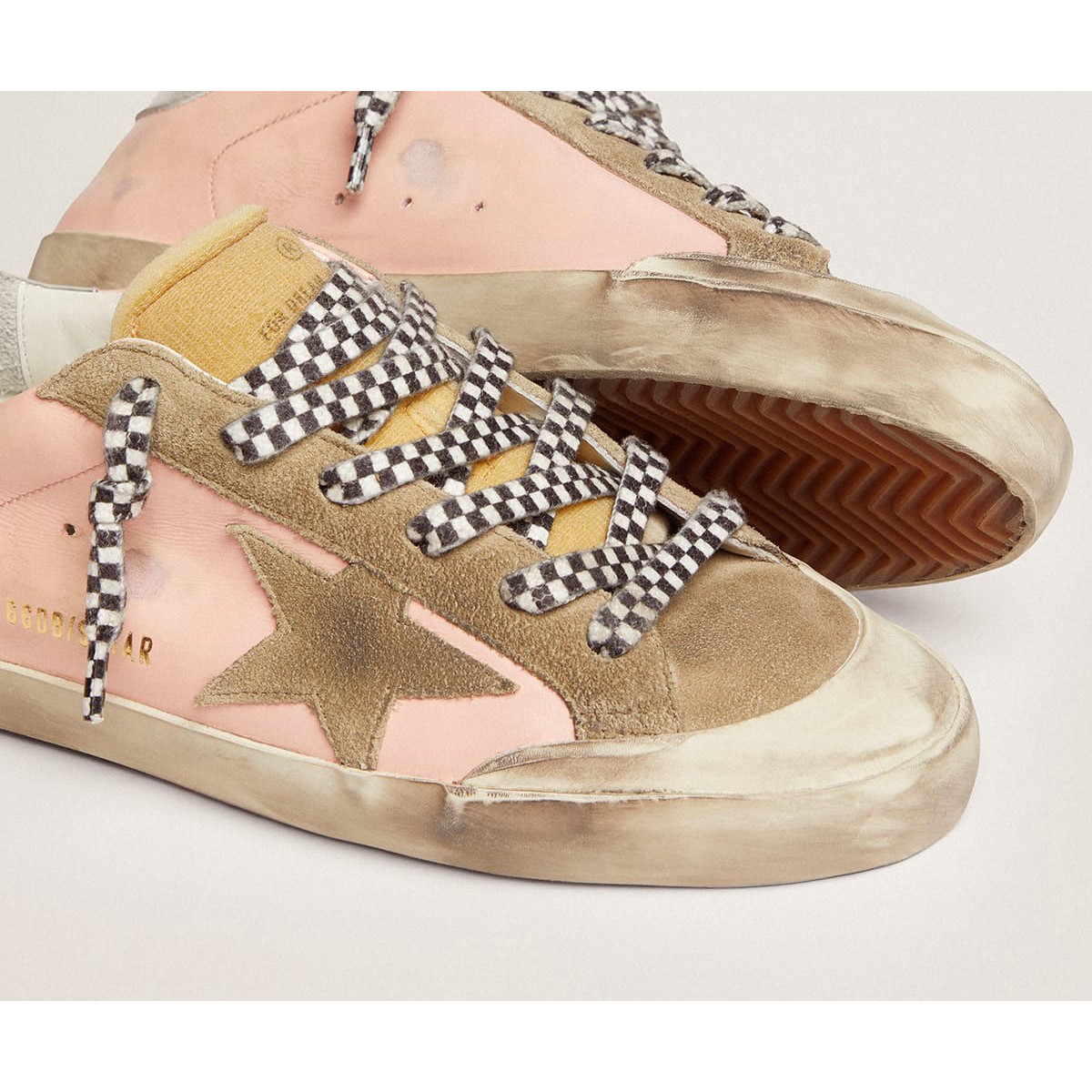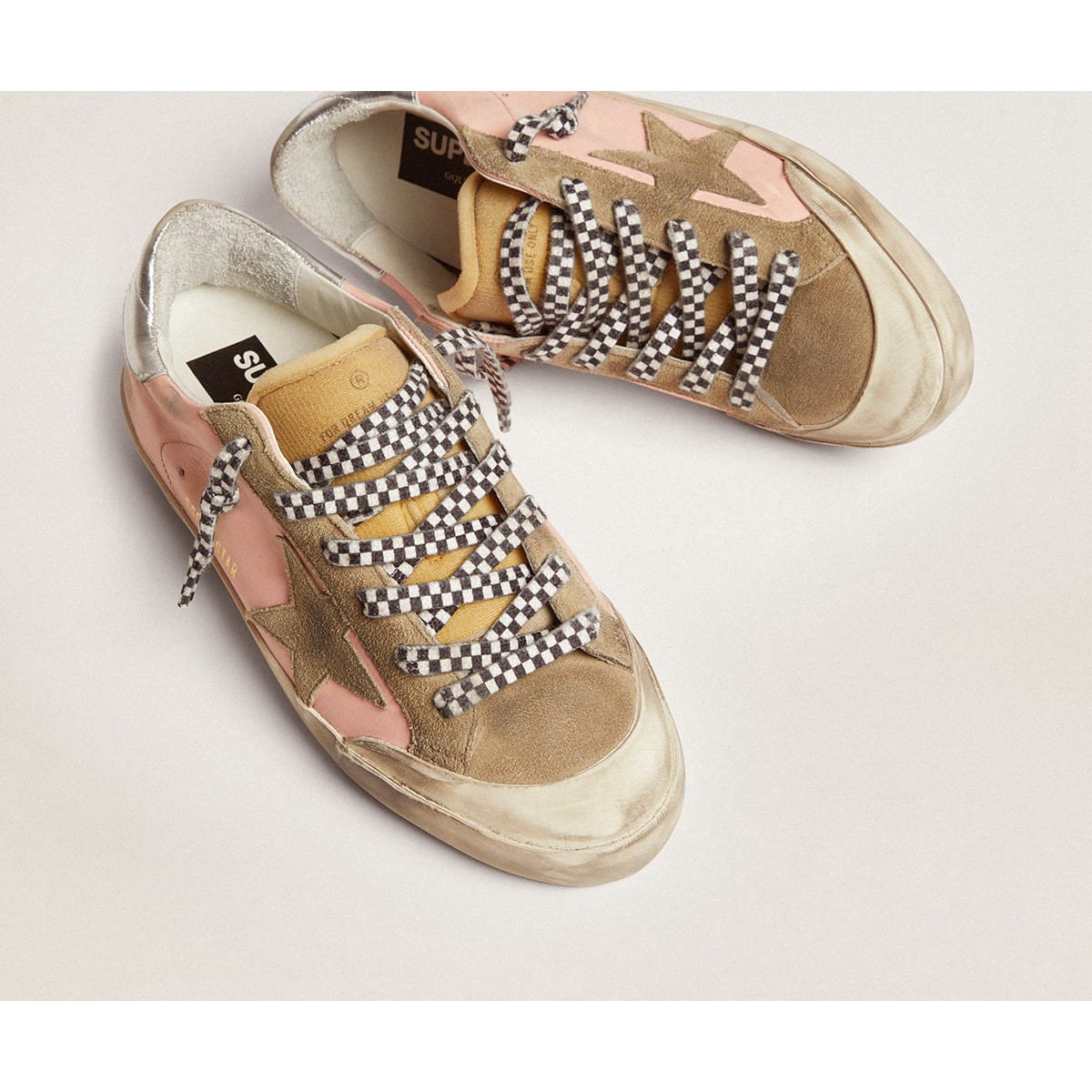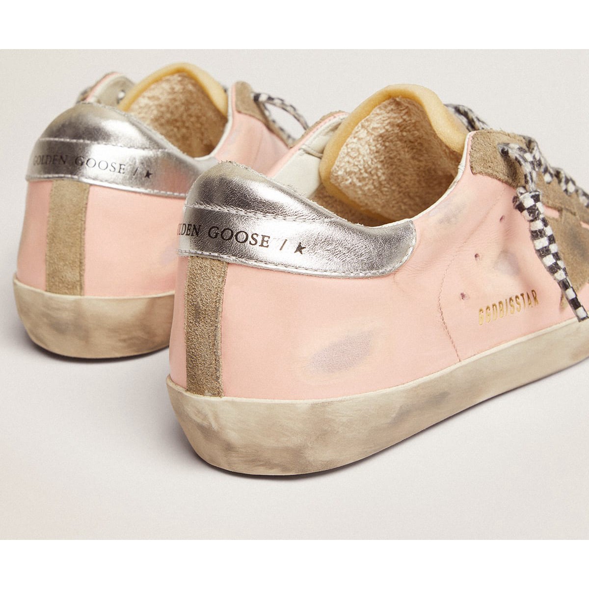 Scarpe Ginnastica super stelle femminili d’oca d’oro in pelle rosa e tacco d’argento GWF00107.F002701.81574