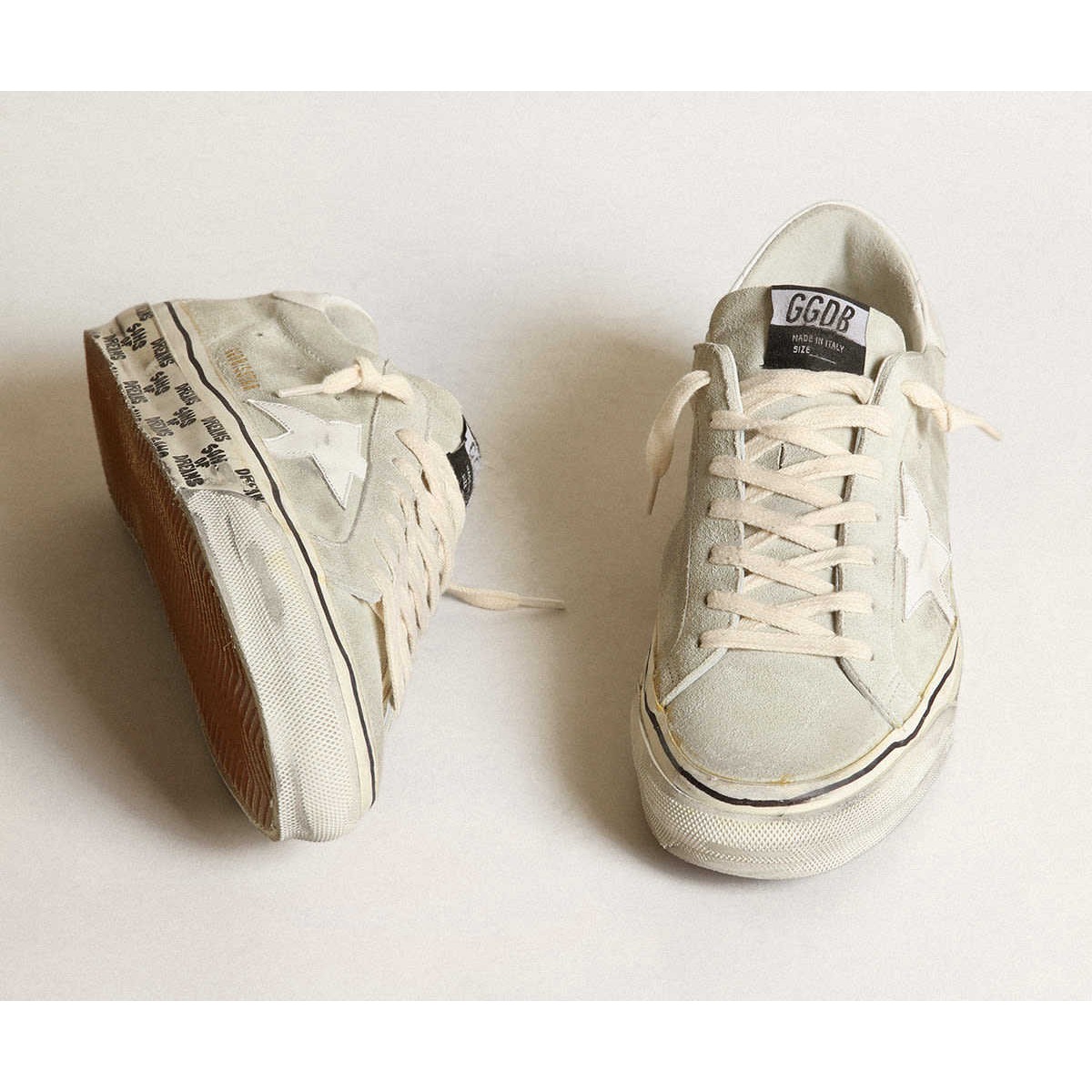 Scarpe Ginnastica super-star dorate in pelle scamosciata grigio ghiacciata con stella in pelle bianca e tab tab GMF00375.F003277.10447