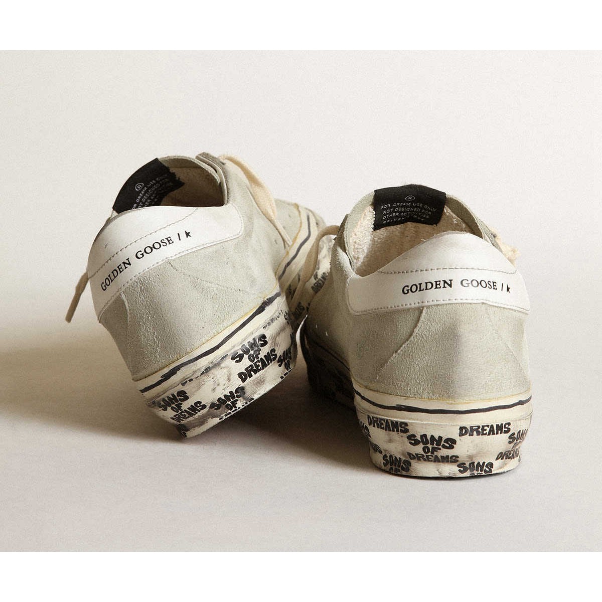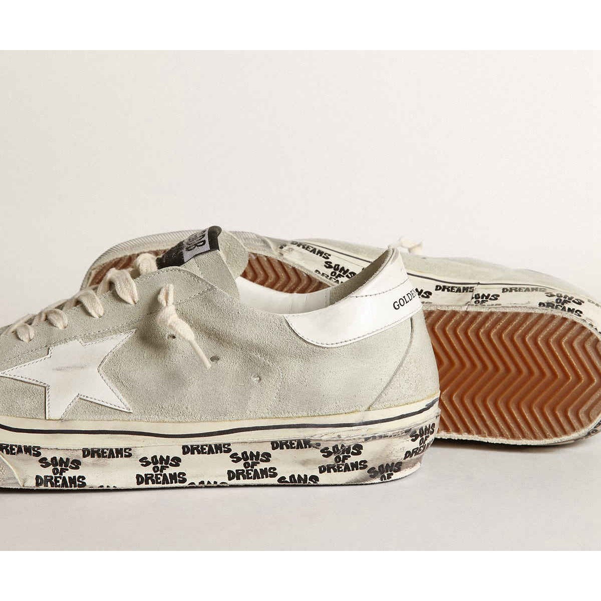 un’icona senza tempo, ma una che si evolve in continua evoluzione. A Golden, adoriamo prendere i nostri classici e rielaborarli sempre, sempre da una nuova prospettiva. Queste scarpe da ginnastica super star con una tomaia in pelle scamosciata grigio ghiaccio presentano una stella in pelle bianca e una linguetta del tallone. La striscia nera contrastante e le lettere sui lacci volpi e color crema completano il look.