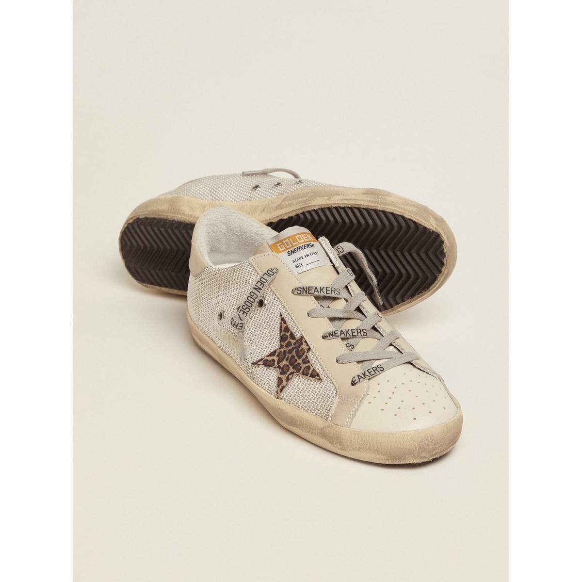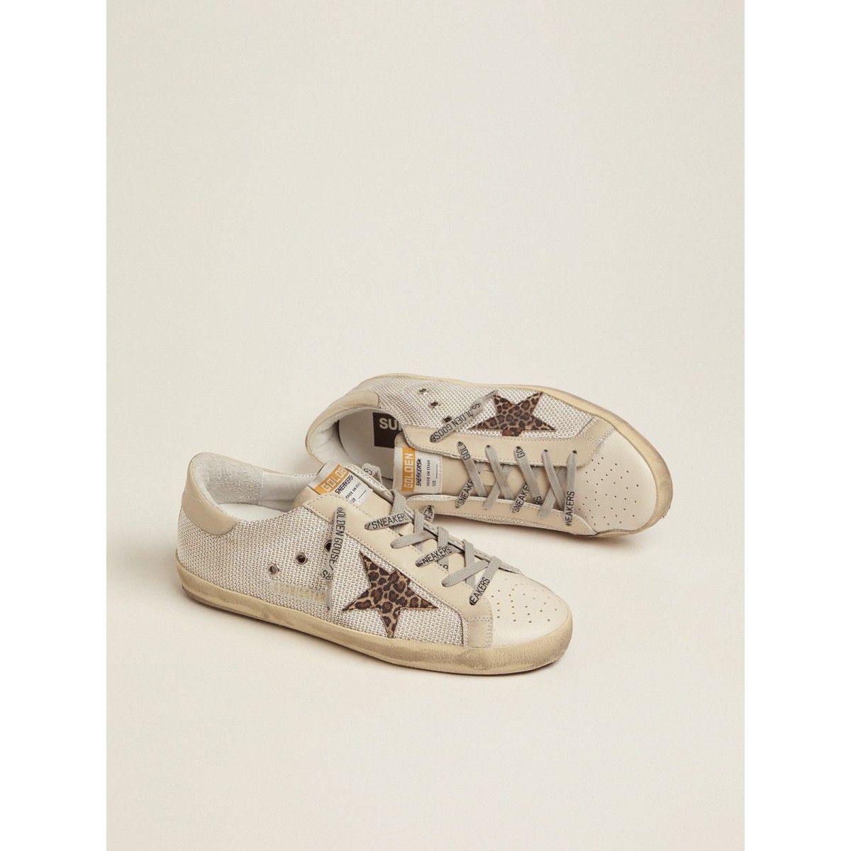 Adoriamo contrasti e sorprese e ci piace sperimentare materiali apparentemente opposti per creare nuove versioni uniche. Come con questi super-star, realizzati in pelle con un lato in mesh alla tomaia, che presenta una stella in pelle scamosciata con stampa leopardata e lacci logorati. .F001473.81115
