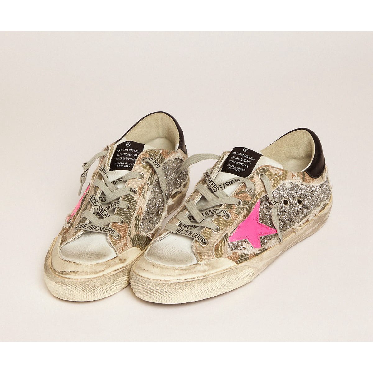 Scarpe Ginnastica super-star femminili d’oca dorate in argento glitter e mimetico tela gwf00107.f001719.81193