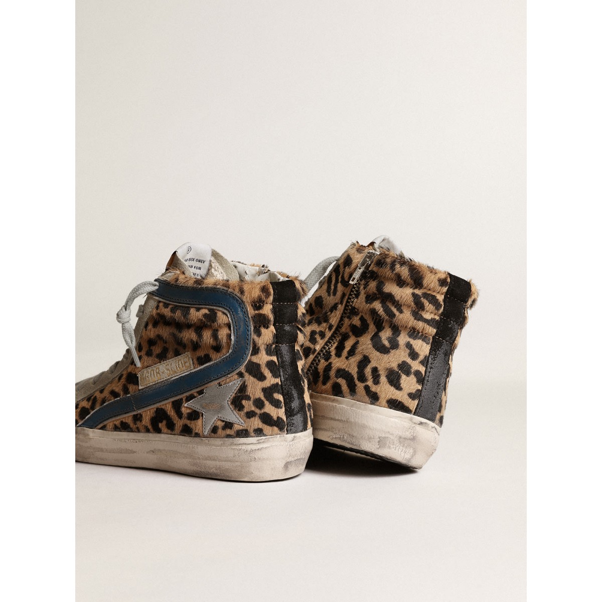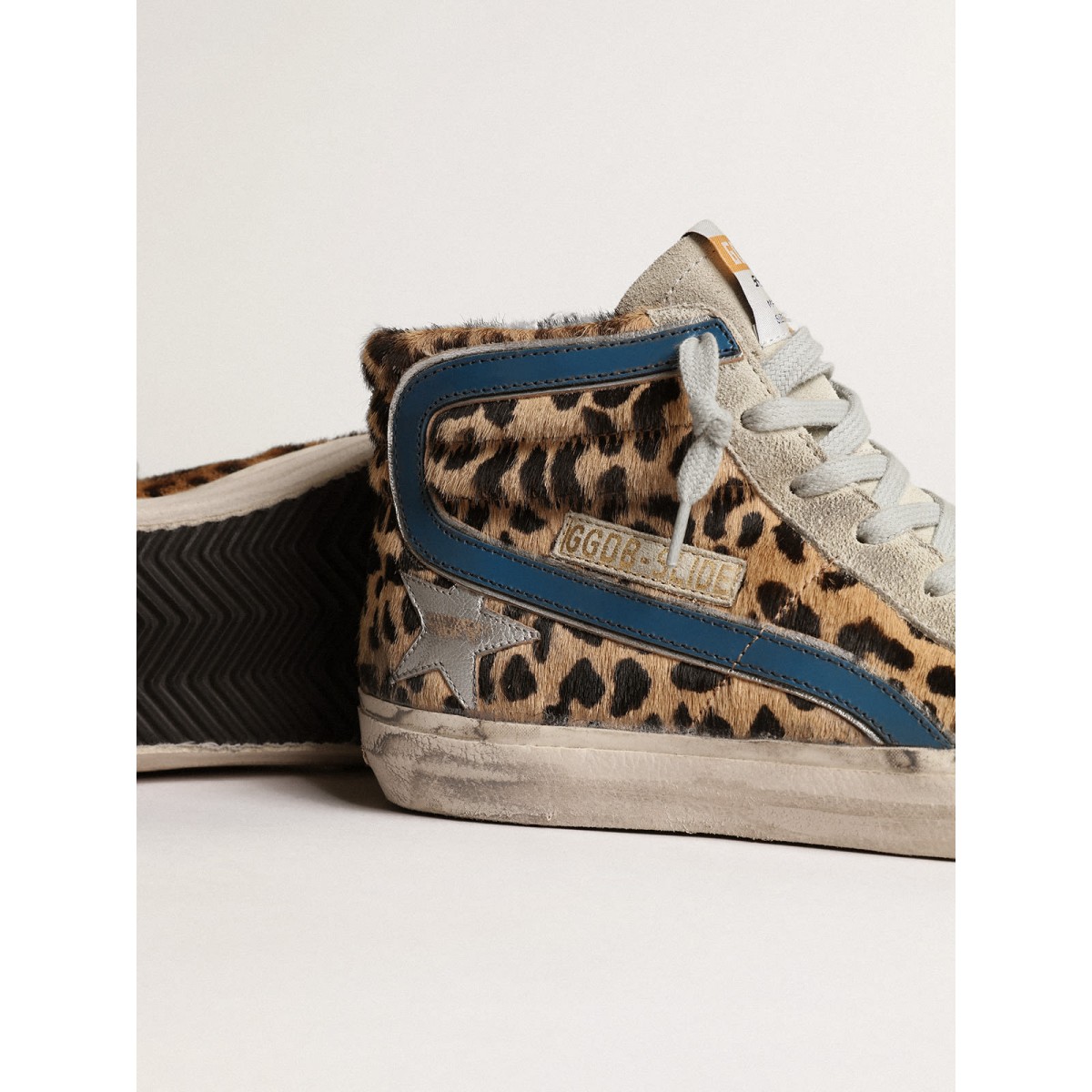 Skate Soul, atteggiamento glamour. Le nostre Scarpe Ginnastica da scivolo ti portano direttamente a Venezia Beach, tra un Ollie e un calcio d’inizio. Questo modello con una tomaia di pony con stampa leopardata presenta una stella in pelle metallica in argento e un lampo in pelle blu a benzina con bordo in pelle metallizzata in argento. Inserti in pelle scamosciata, tra cui la linguetta grigio ghiaccio e la scheda del tallone nero, e i lacci grigio ghiaccio aggiungono il tocco finale.