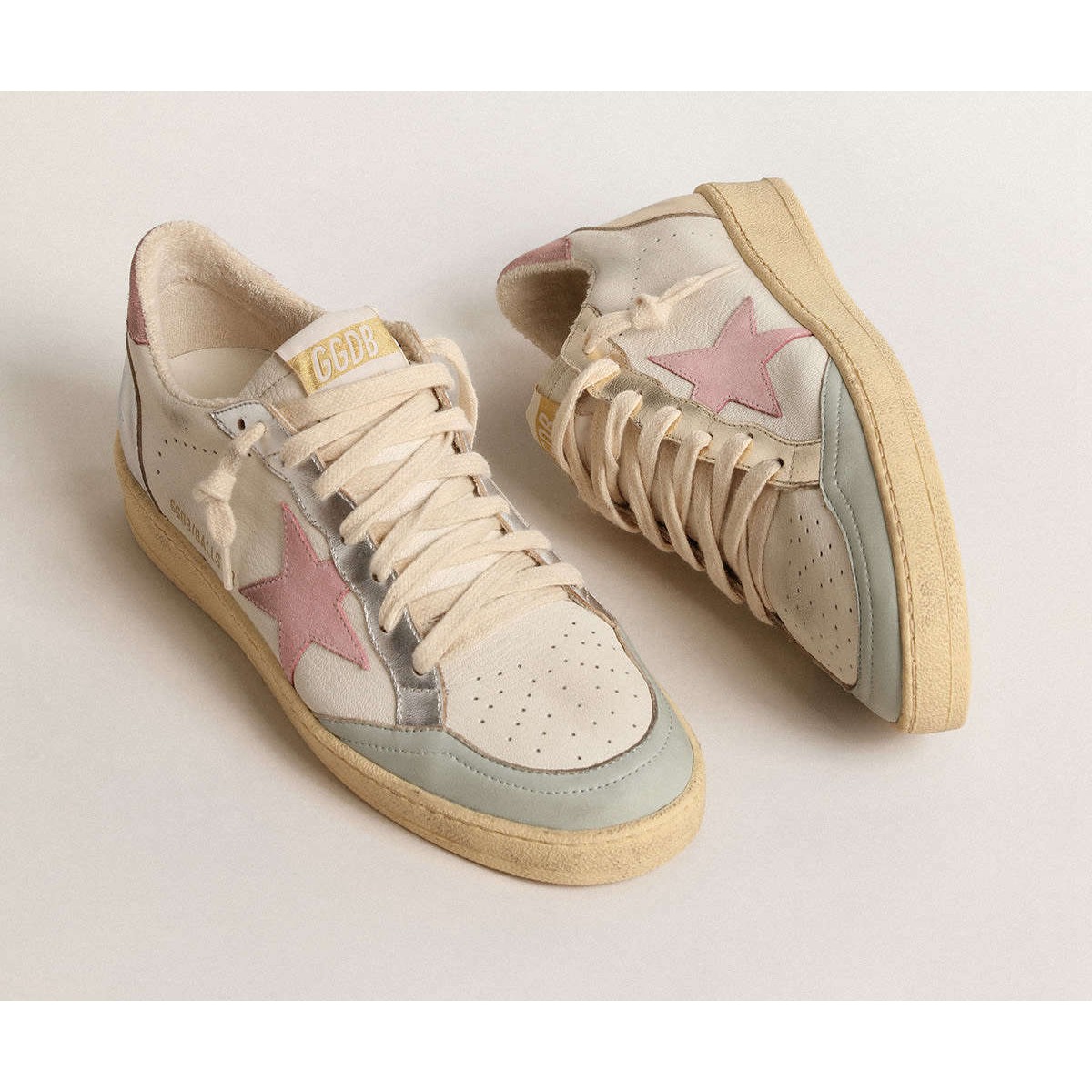 Sognando degli anni Ottanta. Le nostre Scarpe Ginnastica a stella della palla hanno un’atmosfera universitaria americana catturata tra un tiro a cerchio e un giro di skateboard. Questo modello, con un cappuccio in pelle tomaia e grigio in pelle Nappa color crema, presenta dettagli in pelle scamosciata vecchia-rosa, come la linguetta di stelle e tacchi, e inserti in pelle metallica, in argento sulla Scarpe Ginnastica destra e il platino a sinistra. I lacci della crema completano lo stile: cose belle che non passano mai di moda.