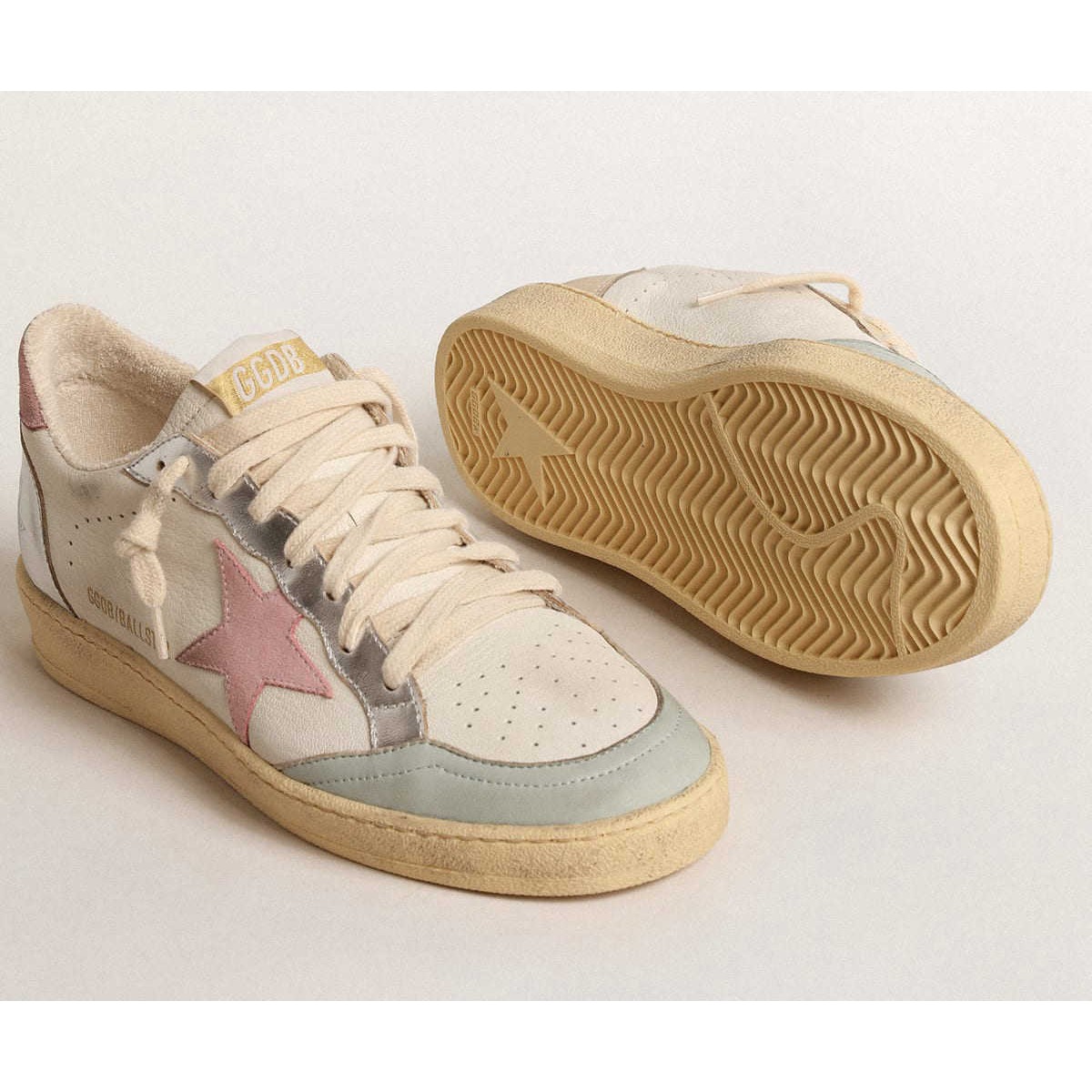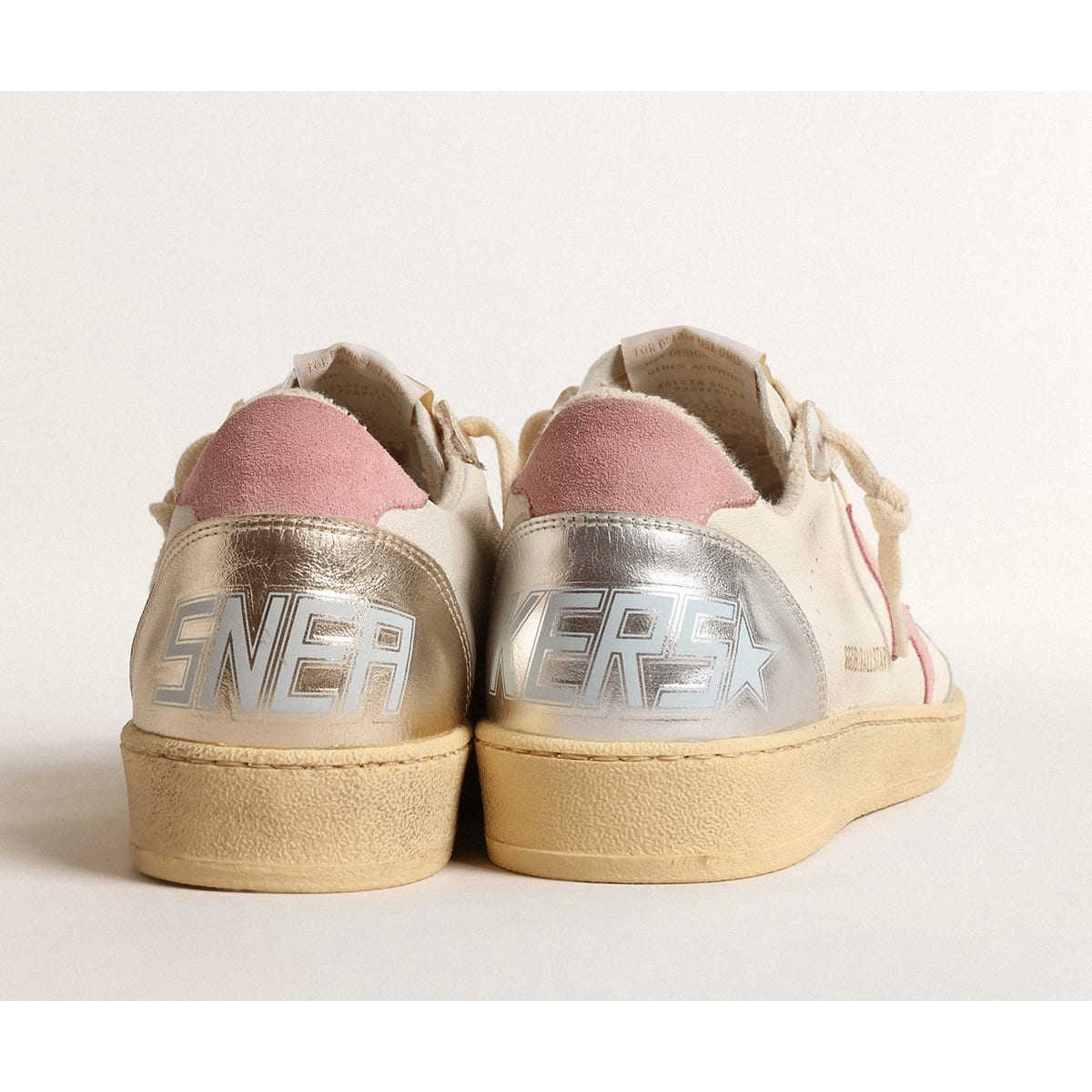 Star della palla da donna d’oca d’oro con stella in pelle scamosciata rosa e inserti in pelle metallica