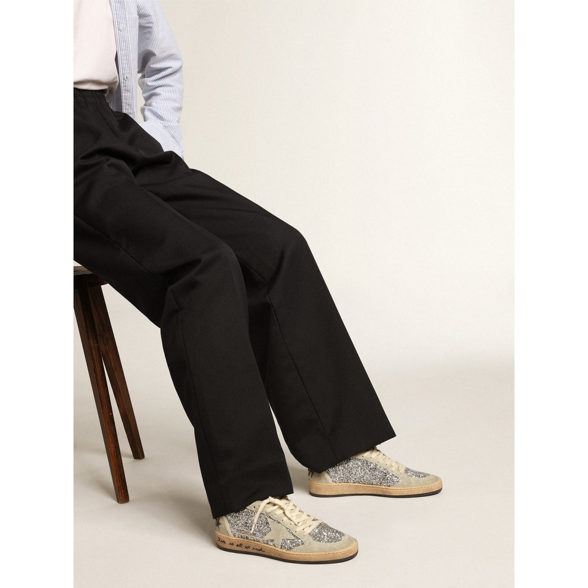 Sognando gli anni Ottanta. Le nostre Scarpe Ginnastica a stella della palla hanno un’atmosfera universitaria americana e una sensazione della scena del basket in quel momento. Con una tomaia glitter in argento, questo modello presenta inserti in pelle scamosciata grigio ghiaccio, tra cui la scheda stella e tallone. L’amore contrastante è tutto ciò di cui abbiamo bisogno le lettere sulla volpe, la suola nera e i lacci color crema aggiungono il tocco finale: cose belle che non passano mai di moda.