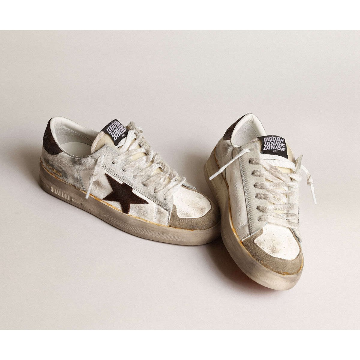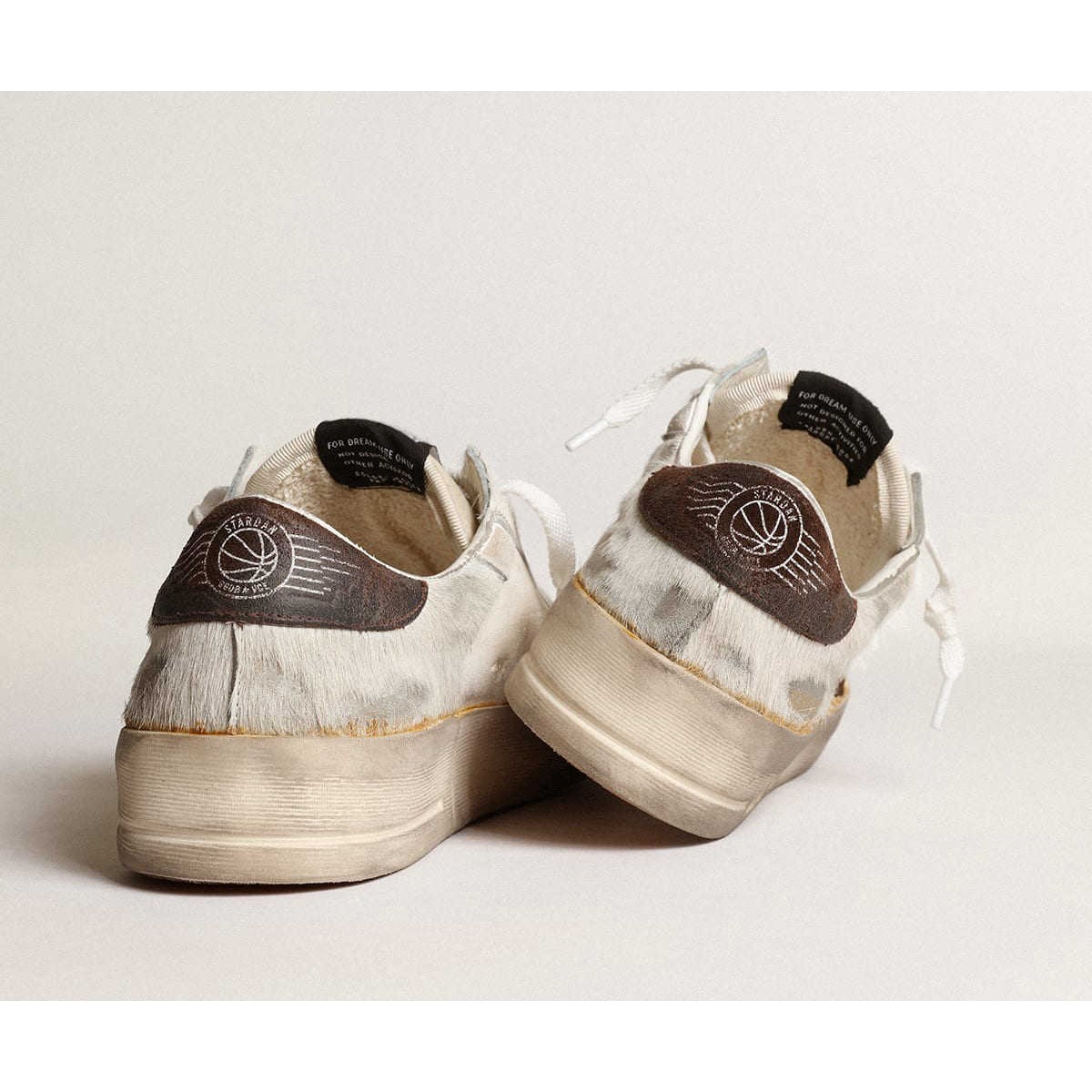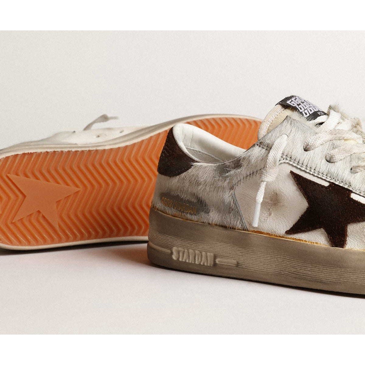 Stardan femminile d’oca d’oro a Nappa e pelle di pony con stella marrone in pelle scamosciata