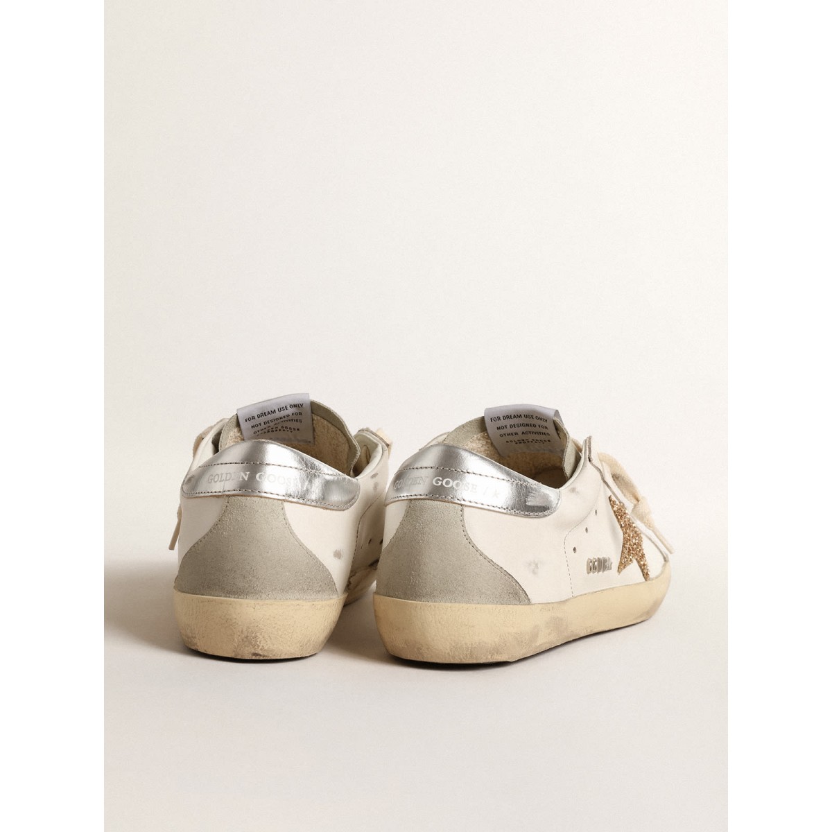 Un’icona senza tempo eppure è in continua evoluzione. A Golden, adoriamo prendere i nostri classici e rielaborarli sempre, sempre da una nuova prospettiva. Queste super stelle con una tomaia in pelle bianca presentano una stella glitter dorata, una linguetta in pelle metallica argentata e una lingua in pelle scamosciata grigio ghiaccio. L’inserto in pelle scamosciata grigio ghiaccio sul retro e i lacci color crema aggiungono il tocco finale.