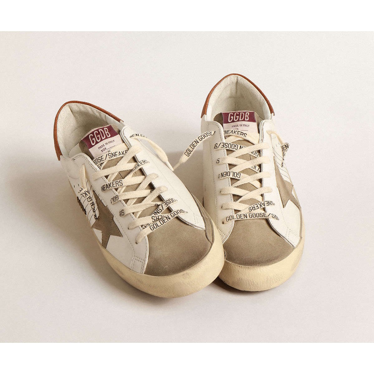 Super-star di Golden Goose con stella in pelle scamosciata e tabulo in pelle marrone