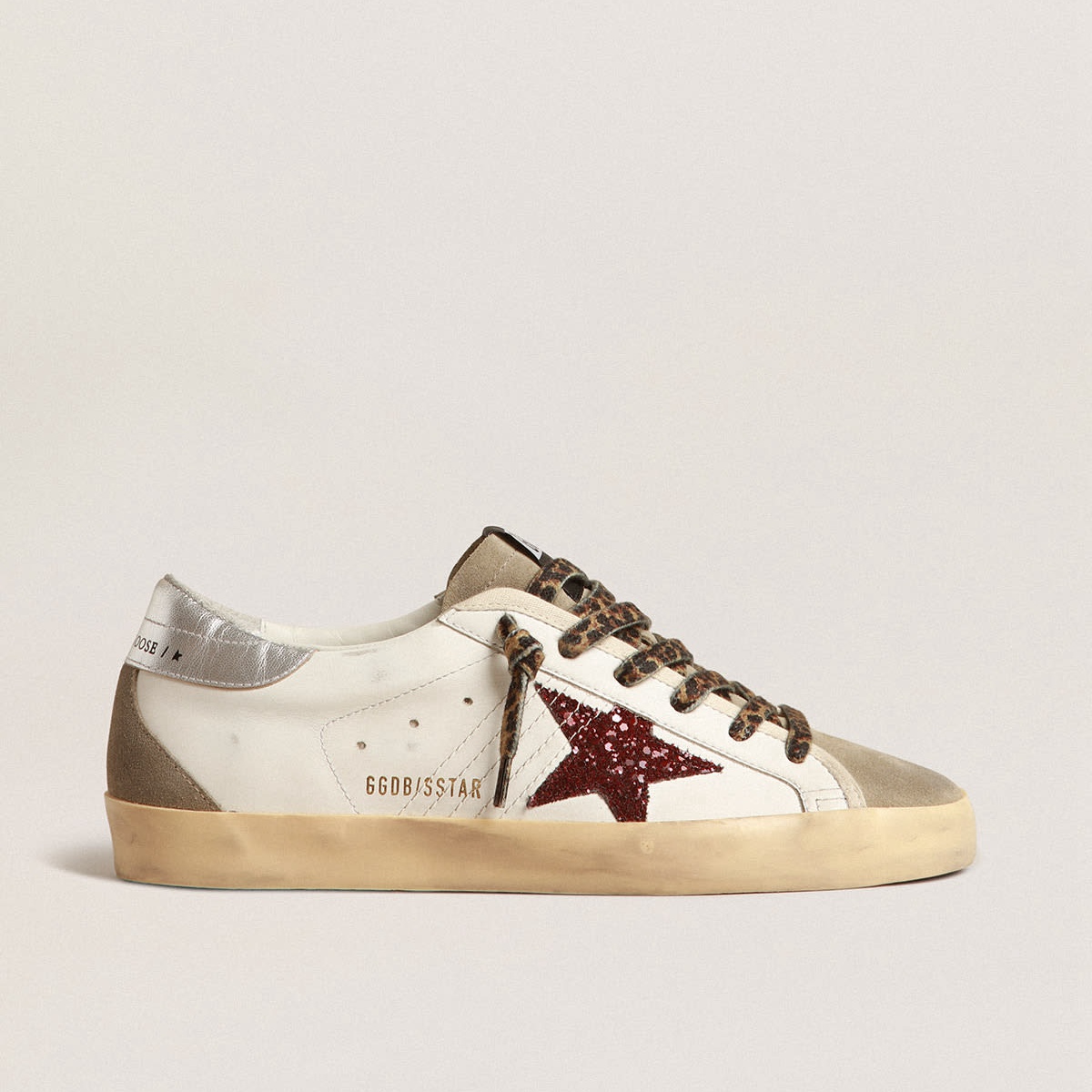 Golden Goose Super-Star con stella glitter bordeaux e tavolo argento gwf00102.f004057.11372