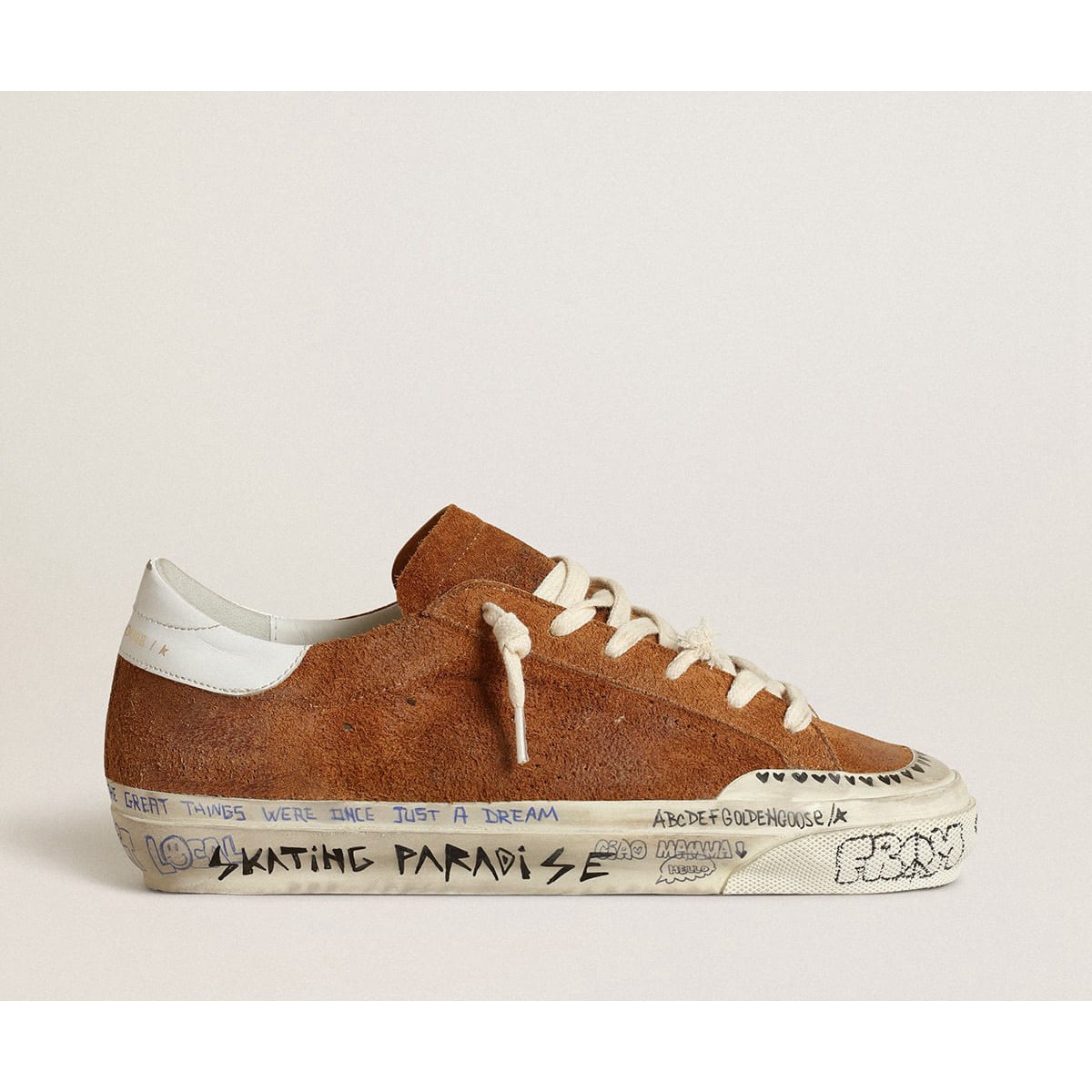 Golden Goose Super-Star Scarpe Ginnastica Ltd in pelle scamosciata marrone chiaro con una stella perforata GWF00401.F003446.55498