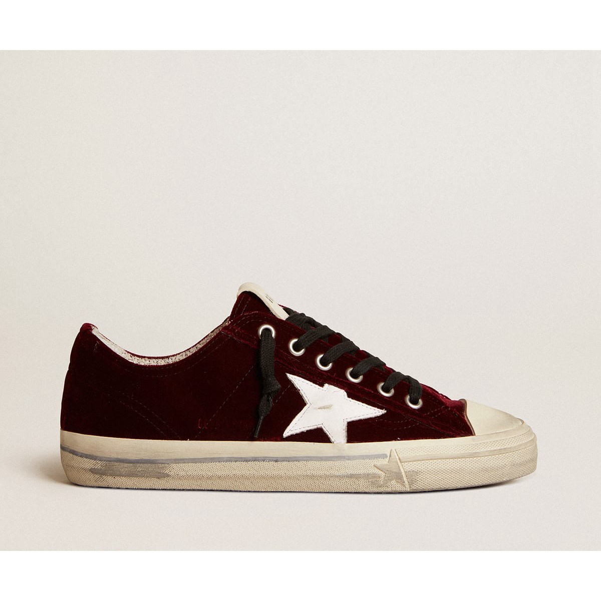 Golden Goose V-Star Scarpe Ginnastica Ltd in velluto bordeaux con stella in pelle bianca GMF00129.F005056.82469