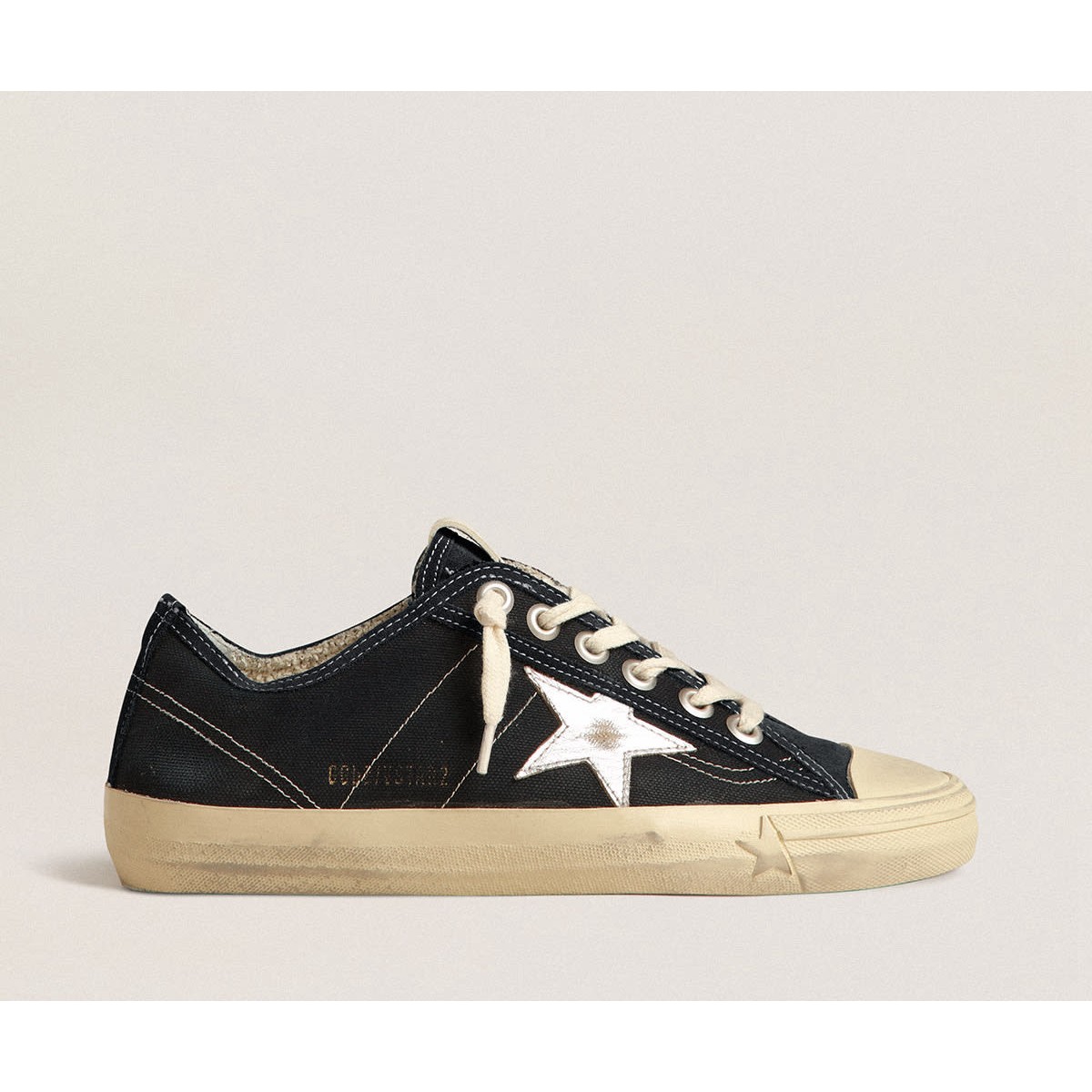 Golden Goose V-Star in tela blu navy con una stella in pelle laminata in argento GWF00205.F004060.50750